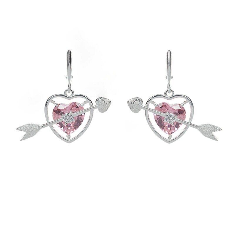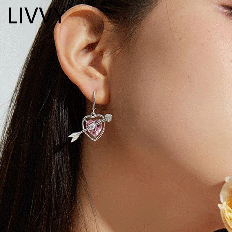 LIVVY クリエイティブピンクジルコンペンダントイヤリング女性ハートウェディングジュエリーギフト 指輪 Liv85737392045