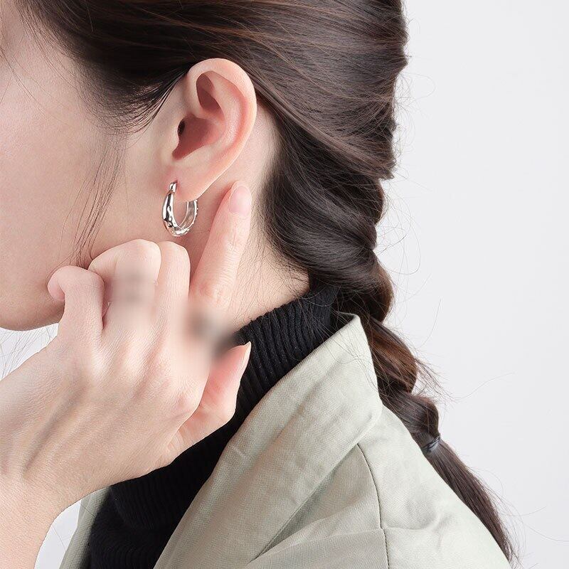 LIVVY シルバーカラー不規則な幾何学ラウンドフープイヤリング女性の個性ホットジュエリーギフト 2021 トレンド 指輪 銀 Liv63997507878