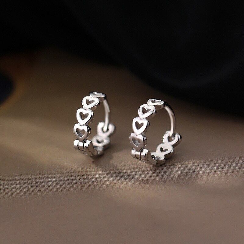 LIVVY シルバー カラー シンプル 中空 ハート シェイプ チェーン イヤリング レディース - ジュエリー 指輪 銀 Liv2376581214