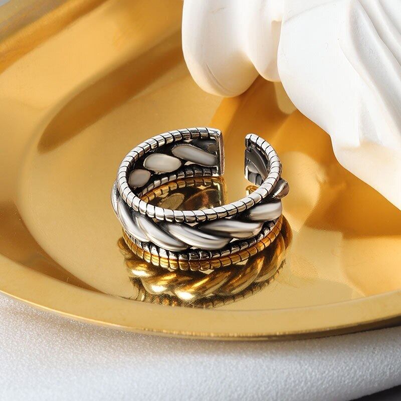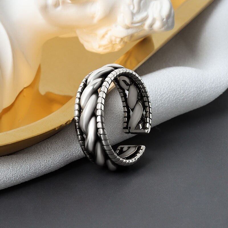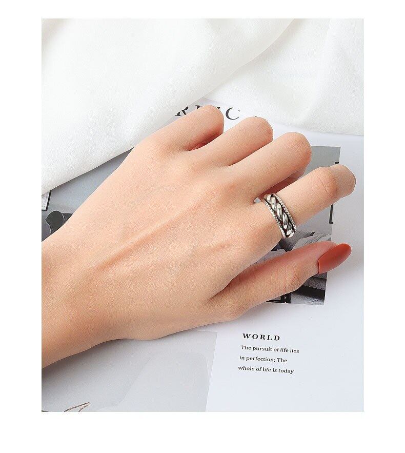 LIVVY タイシルバーカラーツイスト織りオープニング調節可能なリング女性レトロジュエリーアクセサリー アジャスタブル 指輪 銀 Liv73631471454