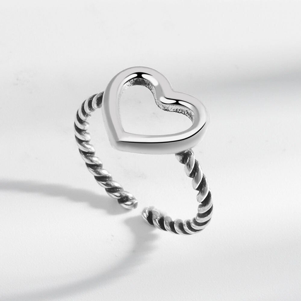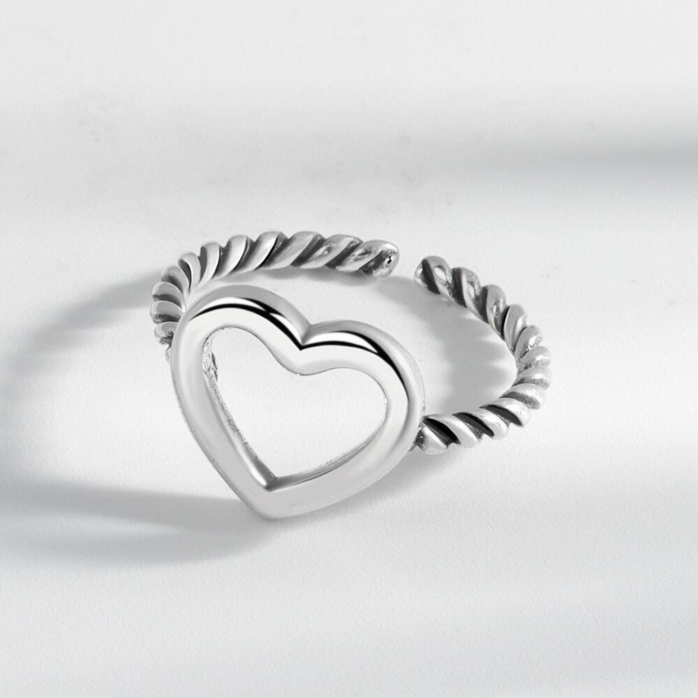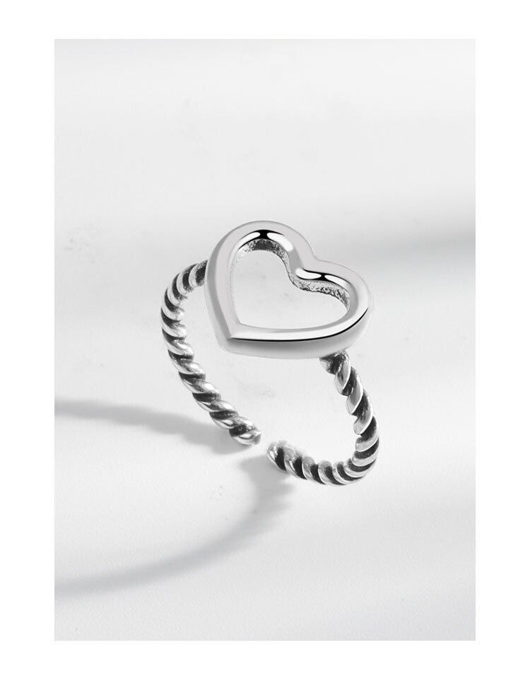 LIVVY タイシルバーカラークリエイティブ中空ラブハートスレッドリング気質絶妙な手作りジュエリー 指輪 銀 Liv87210722080