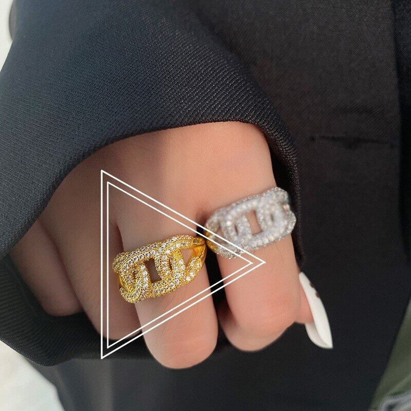 LIVVY クリエイティブ幾何学クロスジルコン調節可能な誇張されたリング女性クリエイティブ誕生日パーティージュエリー アジャスタブル 指輪 Liv80178910417