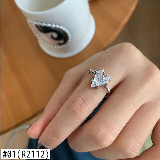 LIVVY ミニマリストシルバーカラースクエアリング女性トレンディラブハートクリスタルジルコンロマンチックなウェディングパーティージュエリーギフト 指輪 銀 スクウェア Liv74986325037