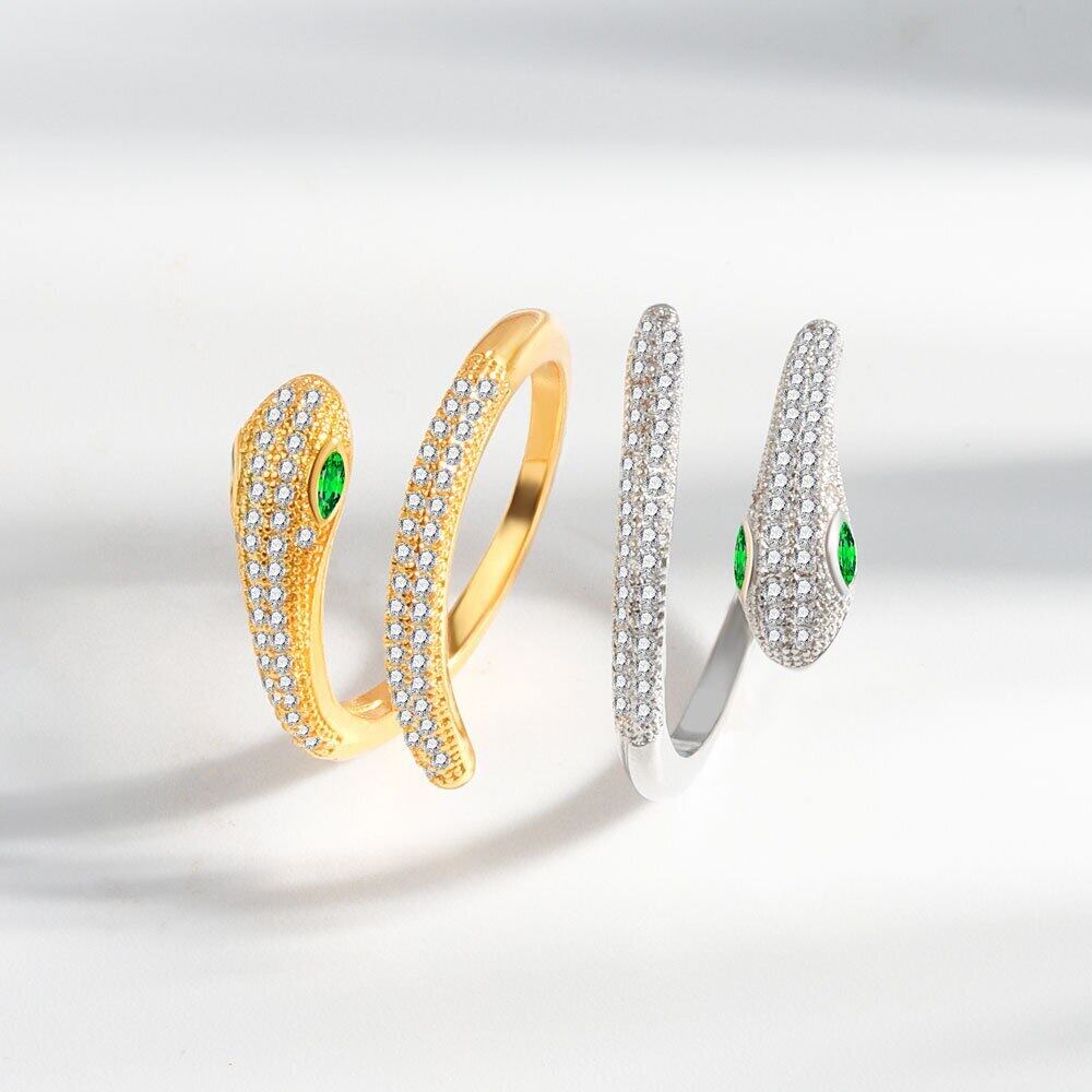 LIVVY シルバーカラースネークリング女性ガール調節可能な絶妙なクリエイティブパンクキュービックジルコニア指リングジュエリーギフト アジャスタブル 指輪 銀 風信子石 Liv36092975740