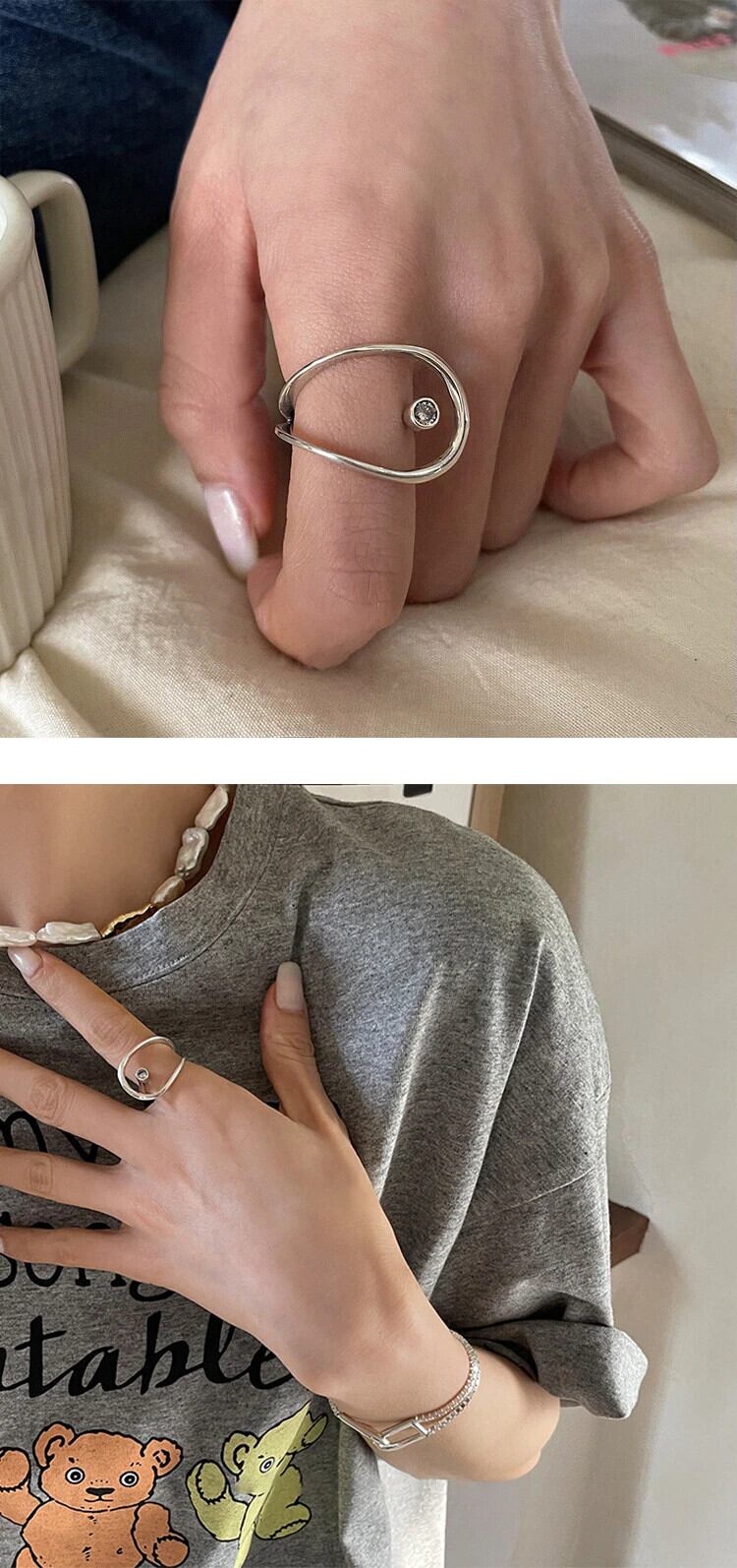 LIVVY シルバーカラークリエイティブ中空幾何学的オープンリング女性カップル手作りの誕生日パーティーの宝石類のギフト 指輪 銀 Liv85483423414