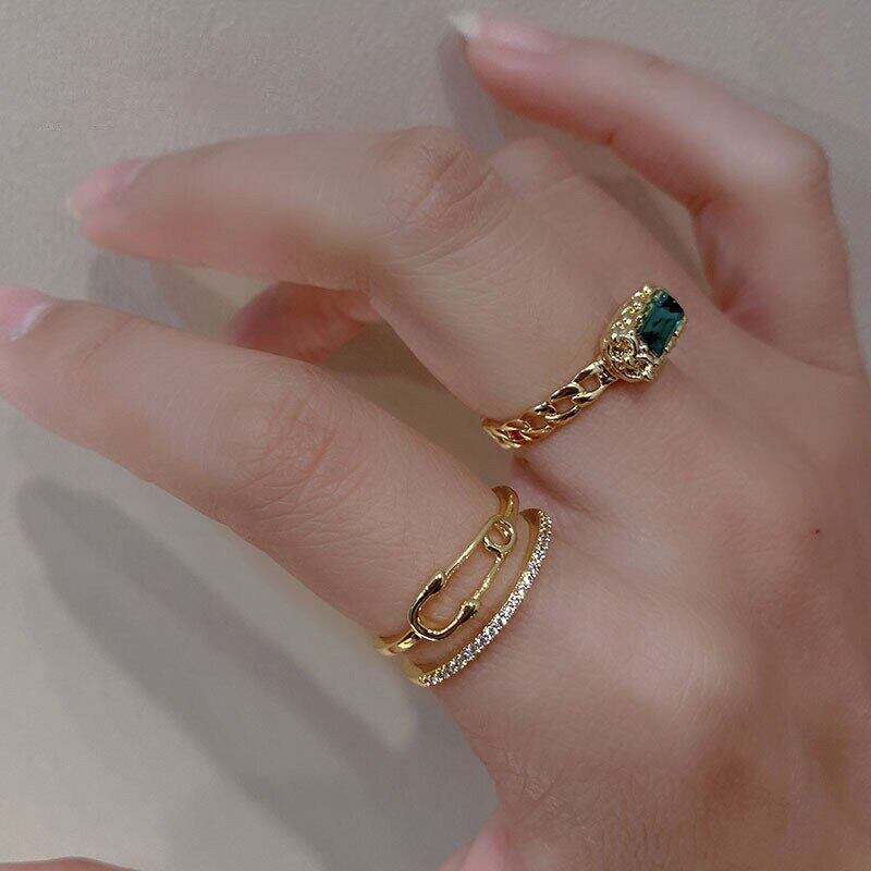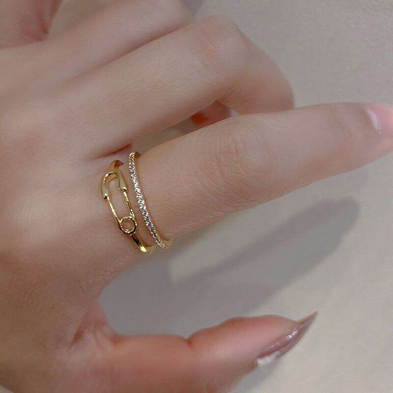 LIVVY シルバーカラーピンオープン調節可能な二重層リング女性カップルシャインジルコンジュエリーギフト アジャスタブル 指輪 銀 Liv81203438702
