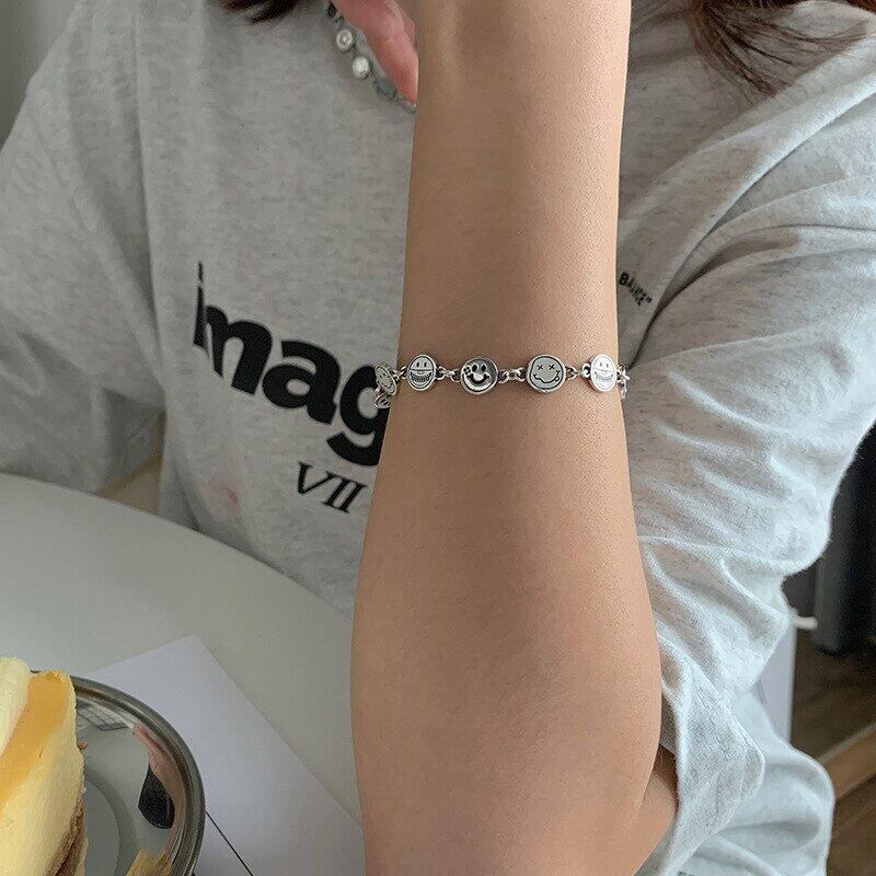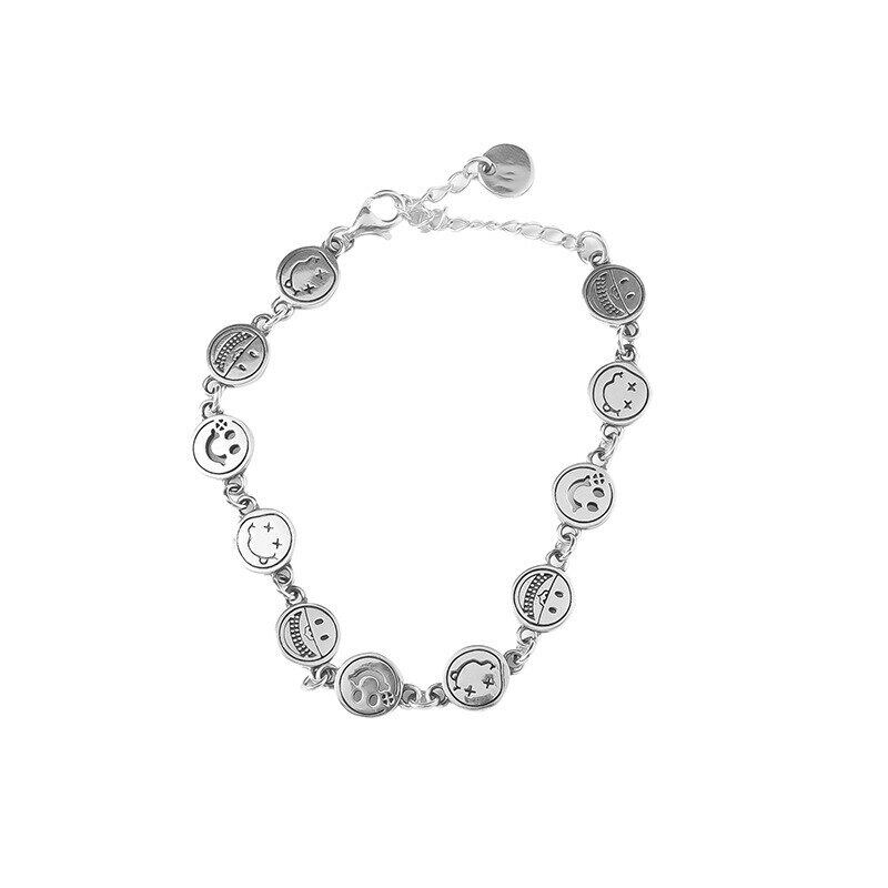 LIVVY ハッピー スマイリー フェイス チャーム ブレスレット レディース メンズ ヒップホップ タイ シルバーカラー アクセサリー ジュエリー ギフト 銀 Liv76877560723
