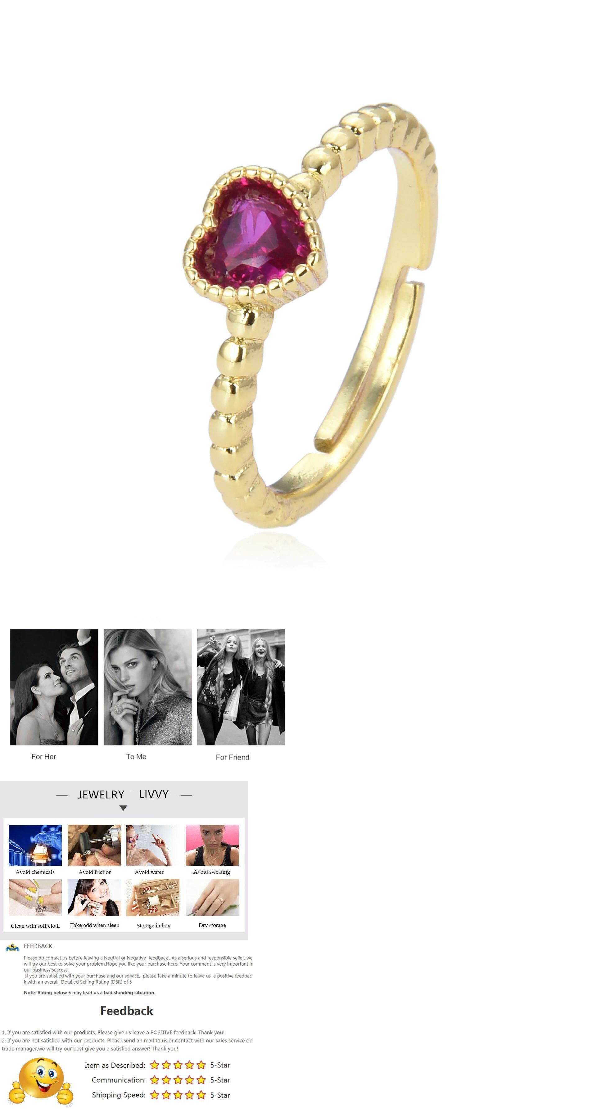 シルバー色のシンプルなロマンチックなハート形の複数の色ジルコン調節可能なリング女性ガールチャームジュエリー アジャスタブル 指輪 銀 Liv31857065264
