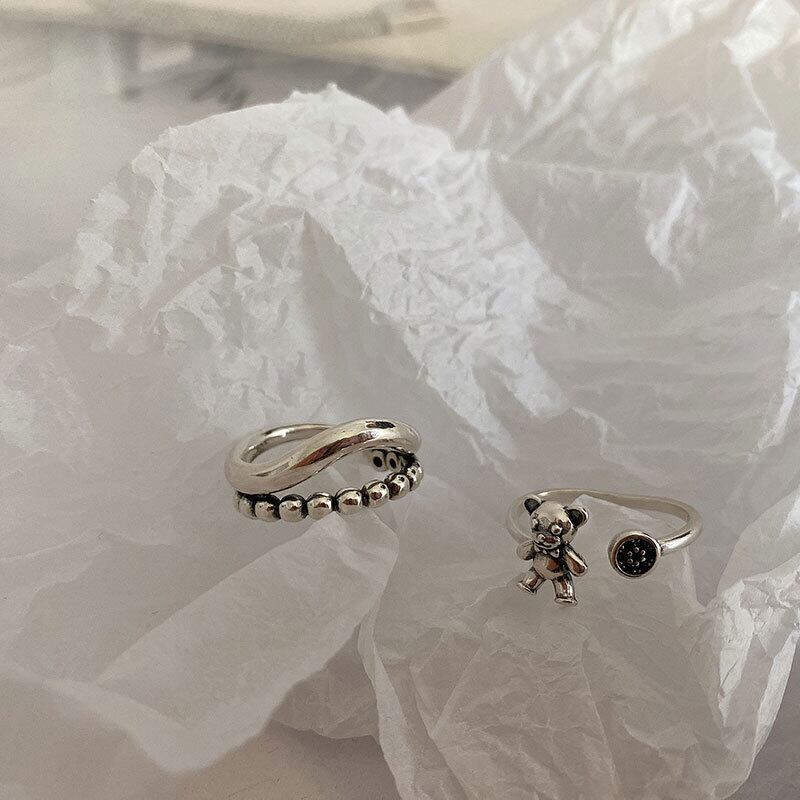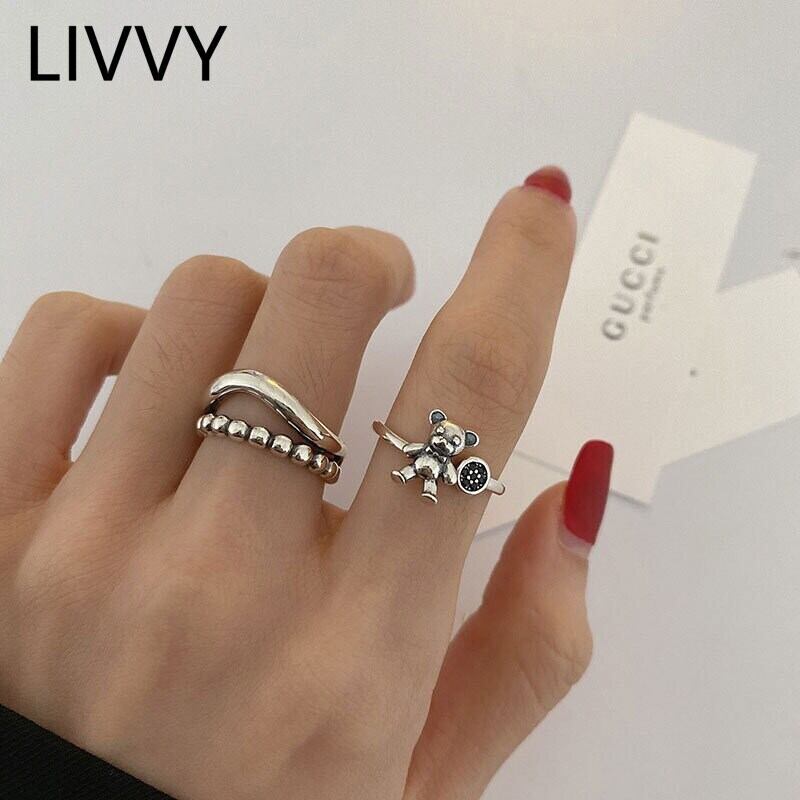 LIVVY シルバーカラーベアリングクリエイティブ中空波ダブル幾何学パーティーアクセサリーギフト 指輪 銀 Liv37939381842