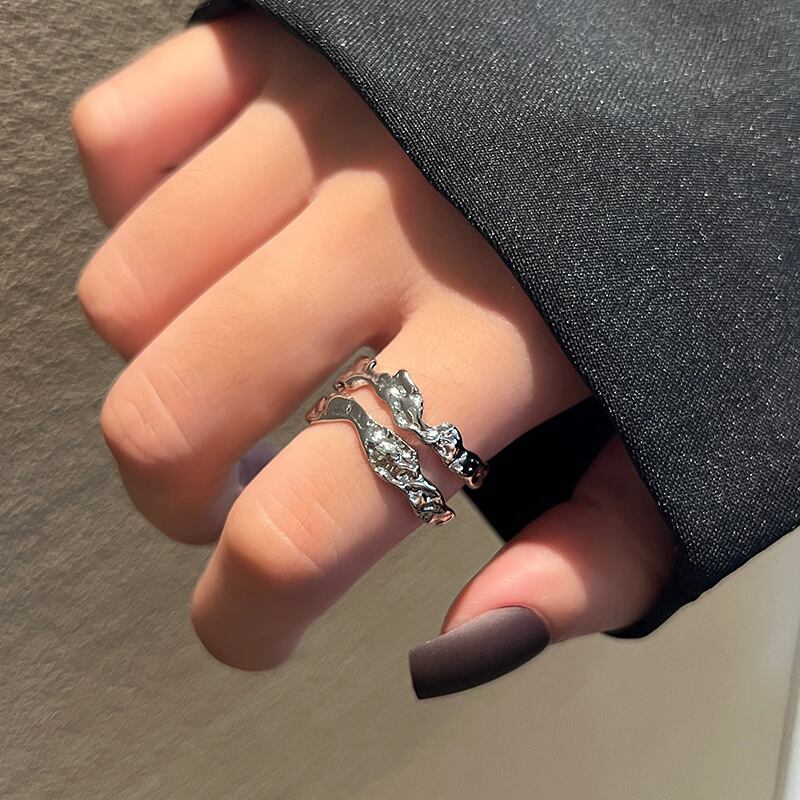 LIVVY シルバー色の不均一なユニークな二重層不規則な溶岩リング女性トレンドフレンチジュエリーギフト 指輪 銀 Liv19265821178