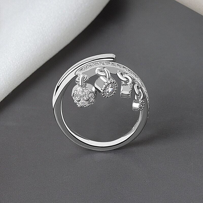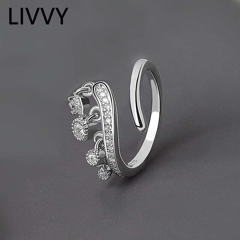 LIVVY シルバーカラーの豪華なクリスタル Tel ペンダントリングツイストキュービックジルコニア調節可能なファインフィンガージュエリー アジャスタブル 指輪 銀 風信子石 Liv54188102725