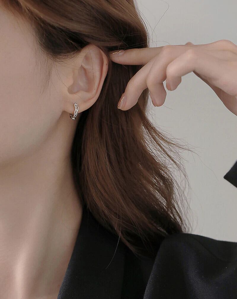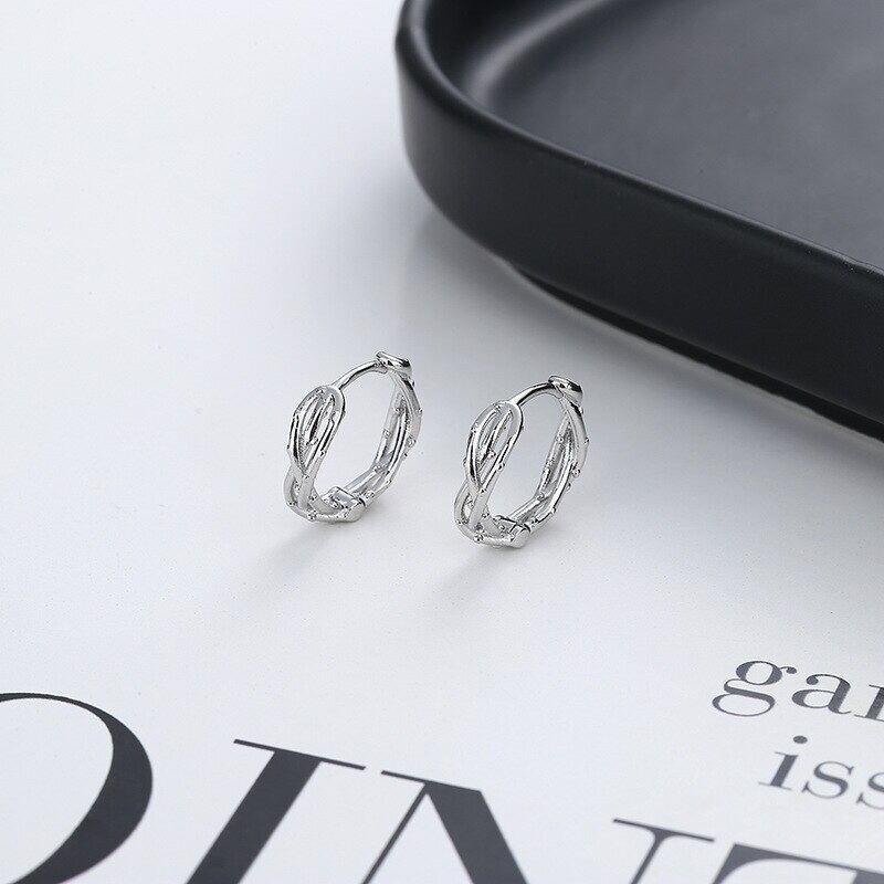 LIVVY シルバーカラー絶妙なエレガンス不規則な中空クロス織りイヤリング女性シンプルな人格ジュエリー 指輪 銀 Liv65482964881