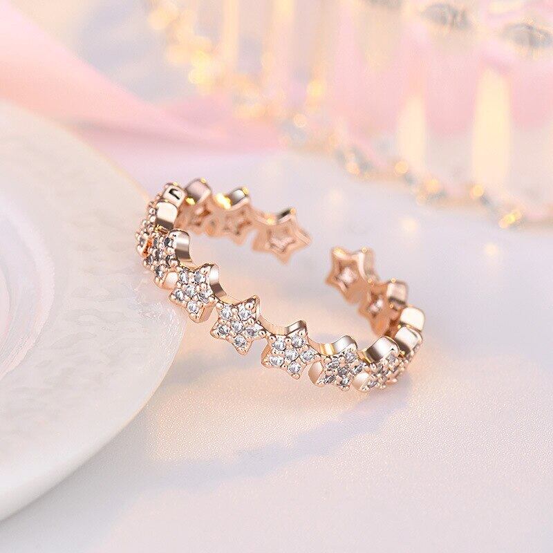 LIVVY シルバーカラークリックスターシェイプチェーンクリスタルジルコンリングローズゴールド結婚指輪まばゆいトレンディジュエリー 銀 Liv30474216553
