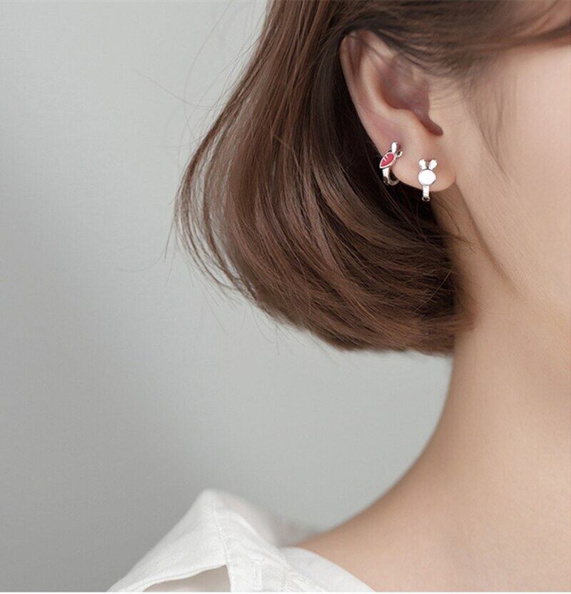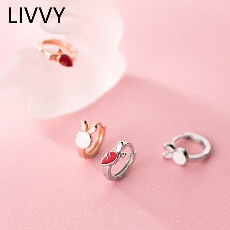 LIVVY シルバーカラー小さなウサギ大根漫画動物フープイヤリング女性女子高生の誕生日プレゼントパーティー 指輪 銀 Liv4888606129