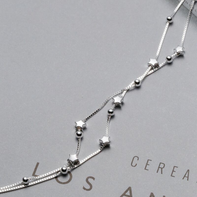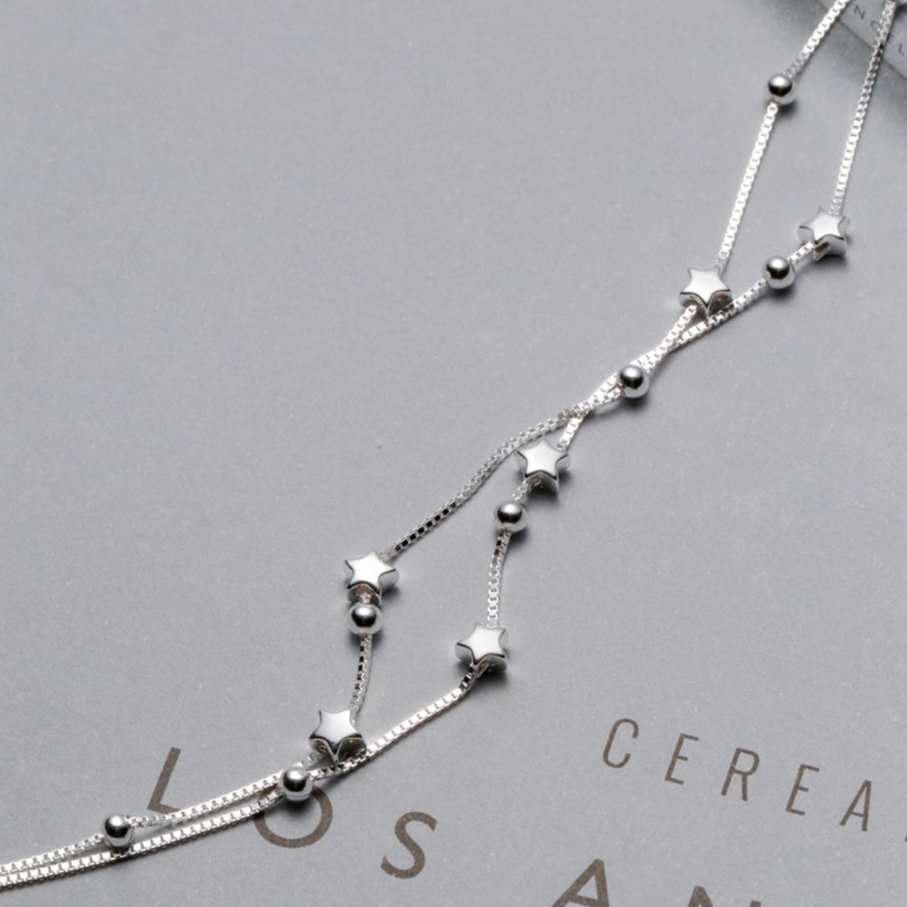 LIVVY シルバーカラー二重層スターラウンドビーズチャームブレスレット & バングル女性バレンタインデーのギフト誕生日ジュエリー 銀 Liv23401235094