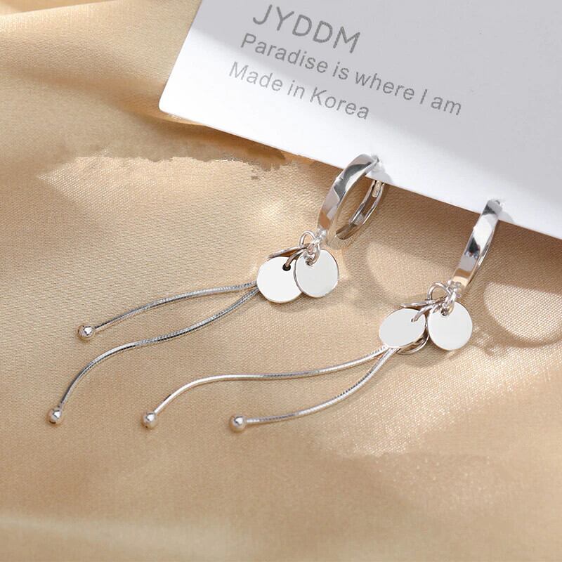 LIVVY シルバーカラーダブルロング Tel ラウンドイヤリング女性トレンディ気質パーティージュエリーギフト 指輪 銀 Liv38556902290