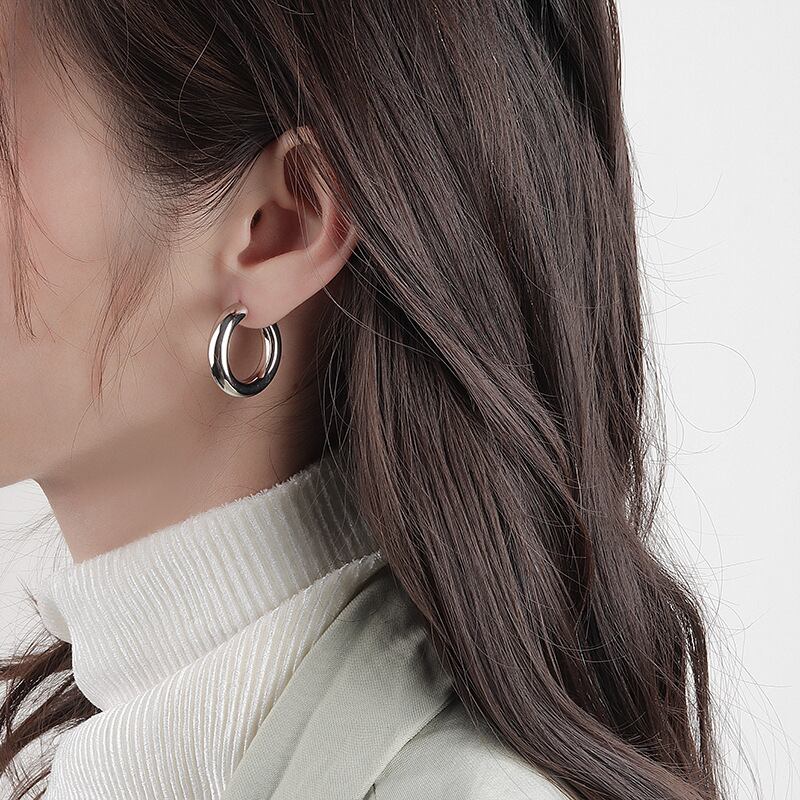 LIVVY シルバーカラーシンプルな滑らかなサークルフープイヤリング女性の個性ホットジュエリーギフト 2022 トレンド 指輪 銀 Liv93125249789