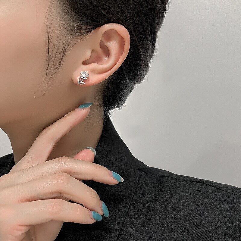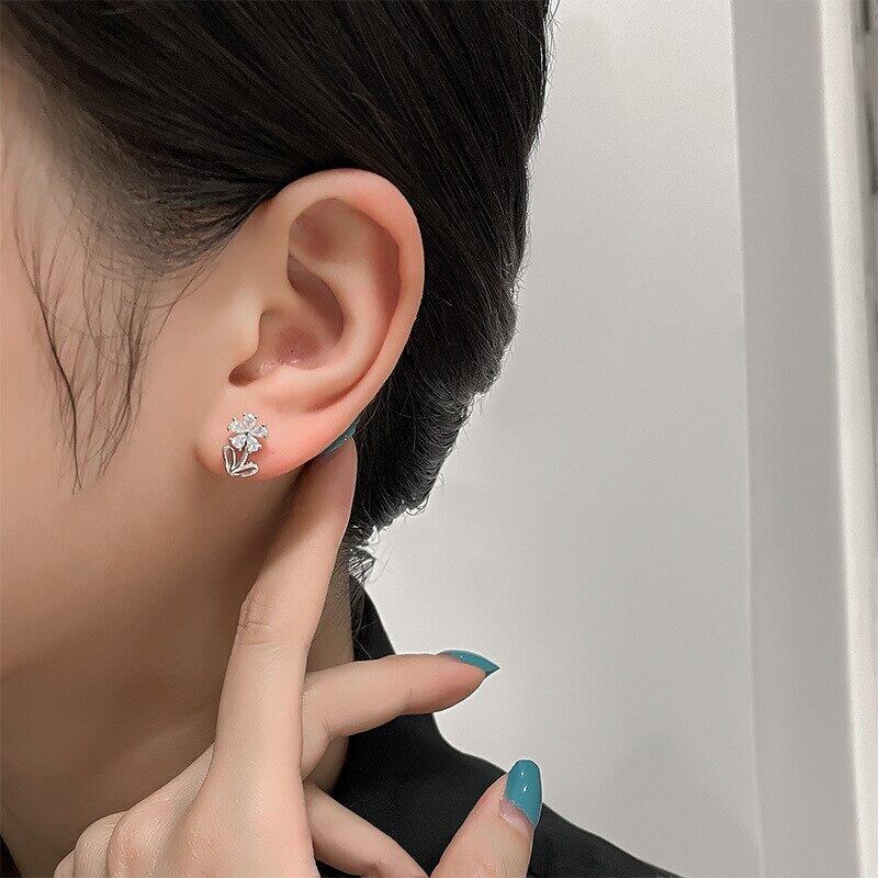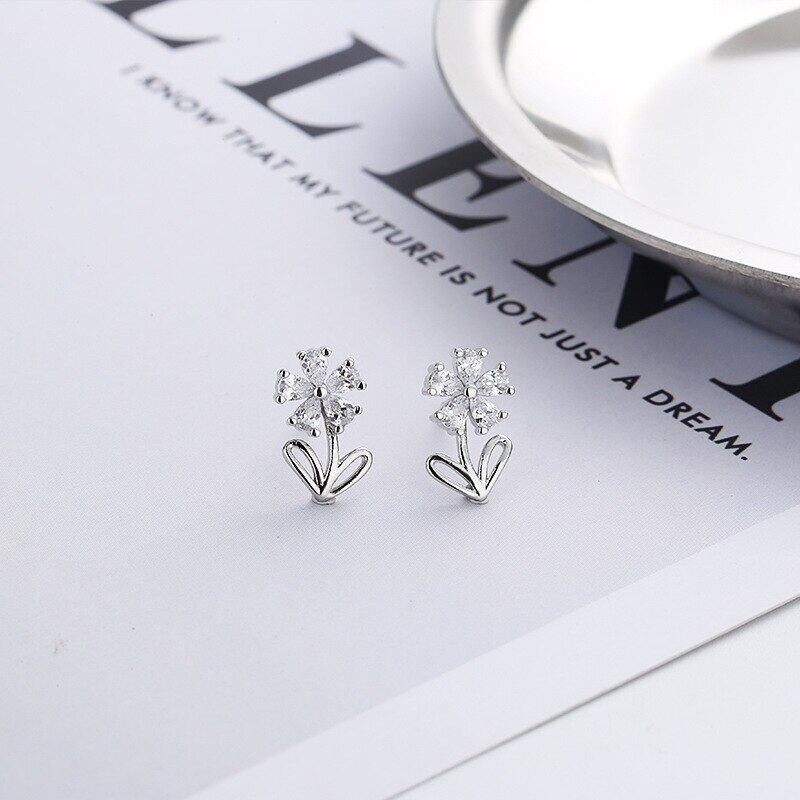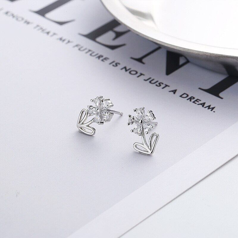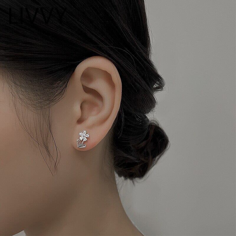 LIVVY シルバーカラー シンプル クリスタル ジルコン フラワー イヤリング ラグジュアリー ウェディング ジュエリー ギフト 指輪 フラワーデザイン 銀 Liv81766133950