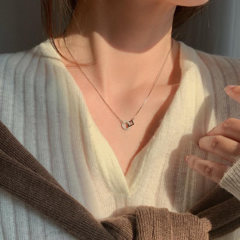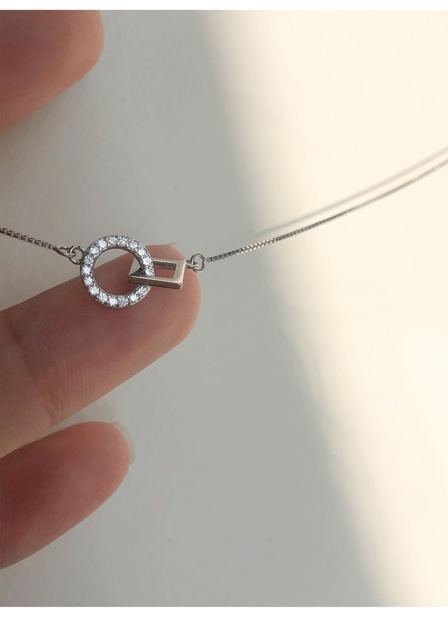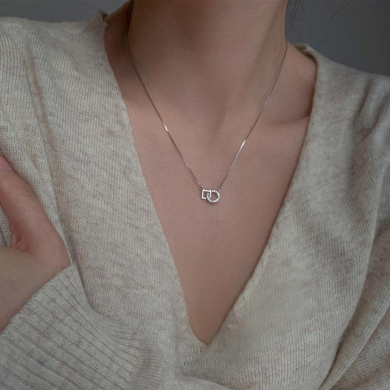 LIVVY シルバーカラースクエアラウンドネックレス女性幾何ジルコンペンダントウェディングパーティー誕生日ファインジュエリー レース Oネック 銀 スクウェア Liv88363683032