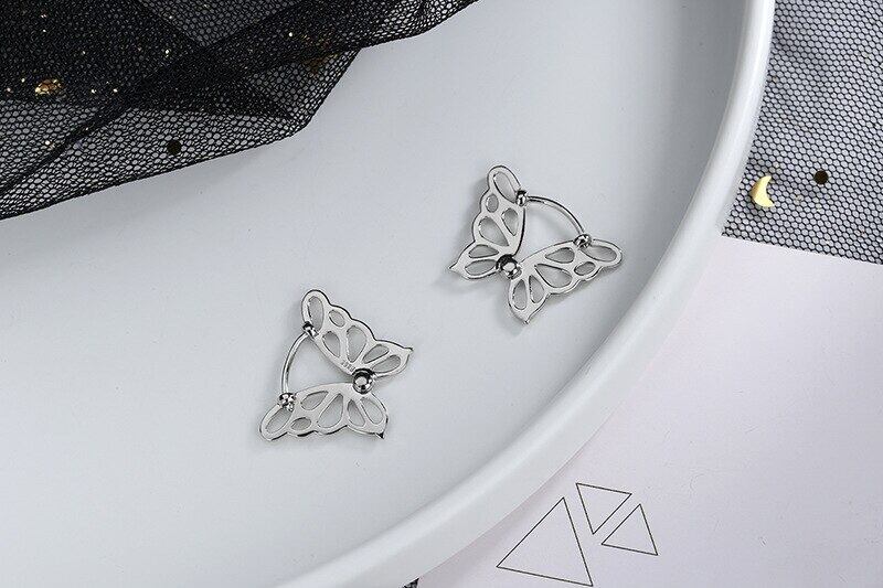 LIVVY シルバーカラー中空アウト蝶の形のイヤリング女性気質チャームジュエリーアクセサリーギフト 指輪 銀 Liv97839958379