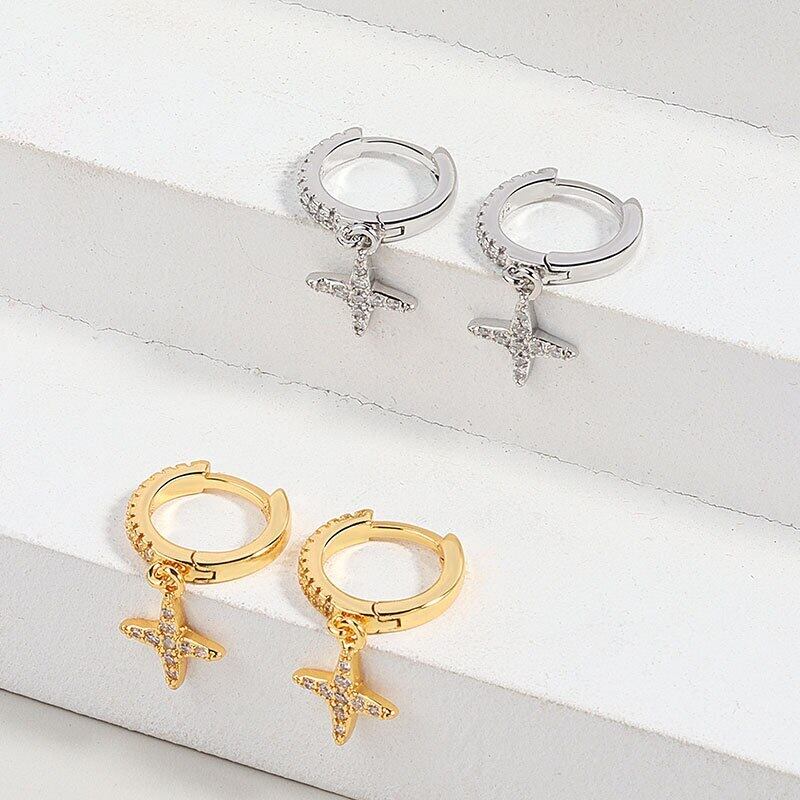 LIVVY シルバーカラー トレンディなスタイル クロス ジルコン イヤリング 気質 ライト ラグジュアリー ロマンチック バレンタイン ギフト 指輪 銀 Liv74374952628