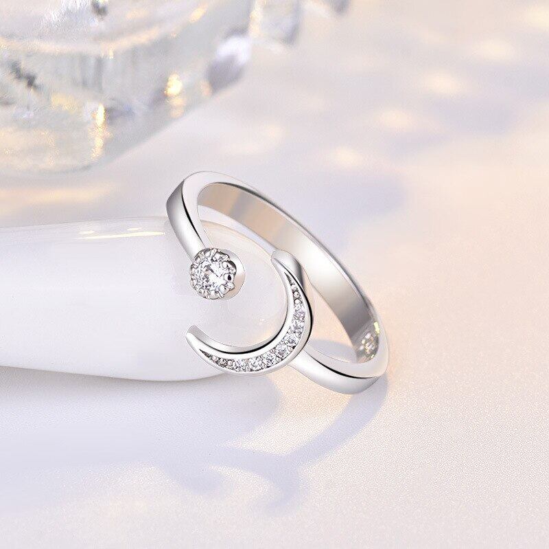 LIVVY シルバーカラーシンプルなトレンディな CZ ジルコンムーンリング 2022 幾何学的な魅力の女性ガールジュエリー 指輪 銀 Liv54962325527