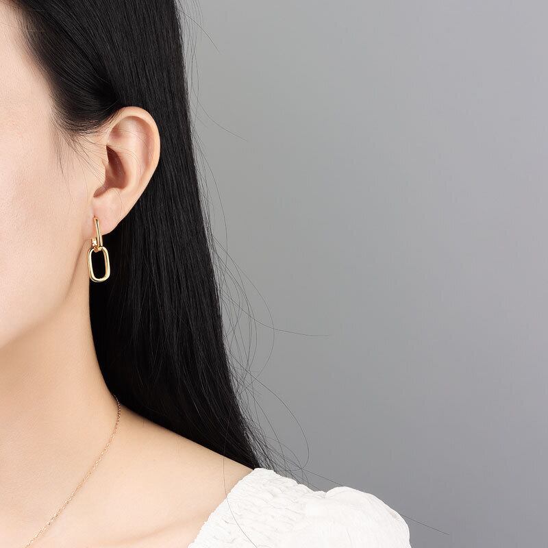 LIVVY シルバーカラージュエリー幾何学ダブルオーバルスタッドピアス女性気質ジュエリーギフト イヤリング リング 指輪 銀 Liv81091752625