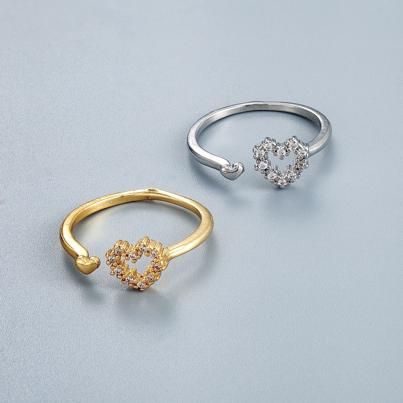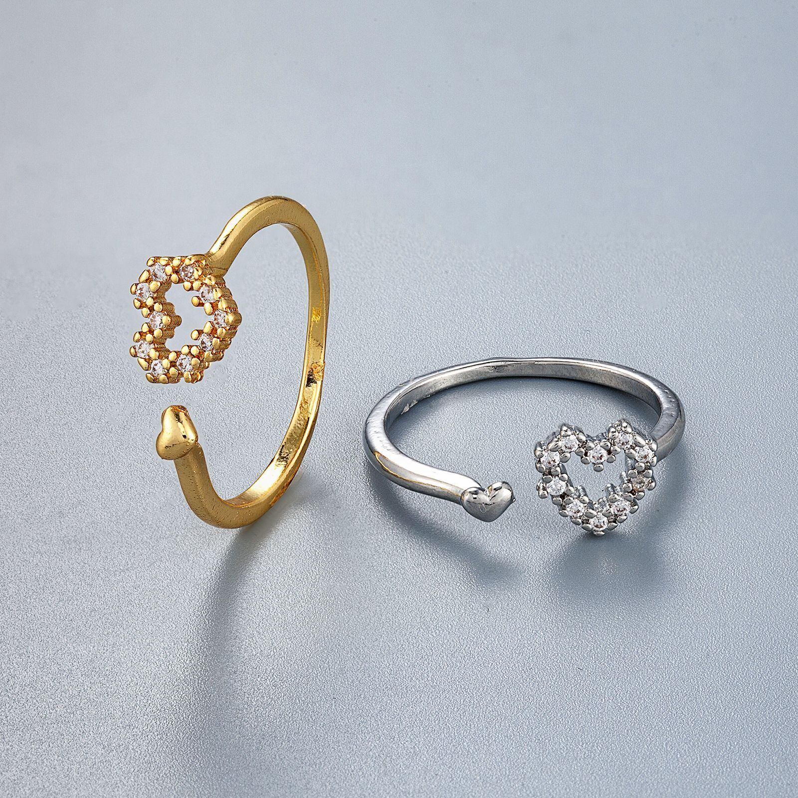 シルバーカラークリエイティブダブルハート中空調節可能なリングインレイ可憐なジルコン女性の結婚式婚約アクセサリー アジャスタブル 指輪 銀 Liv63704943032