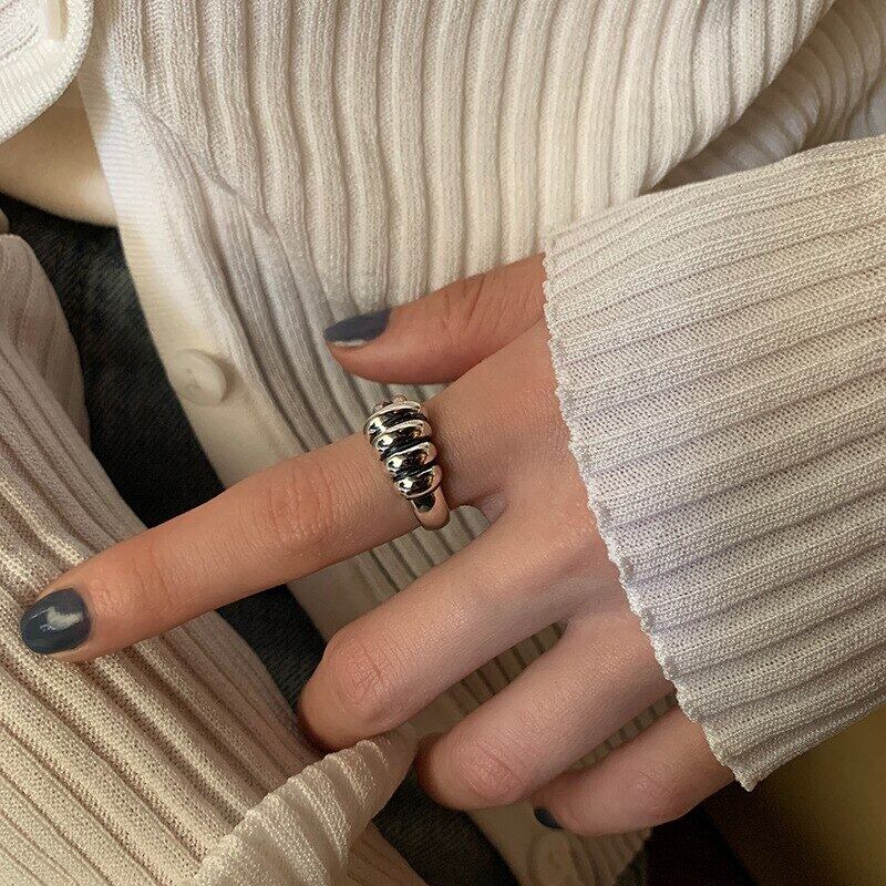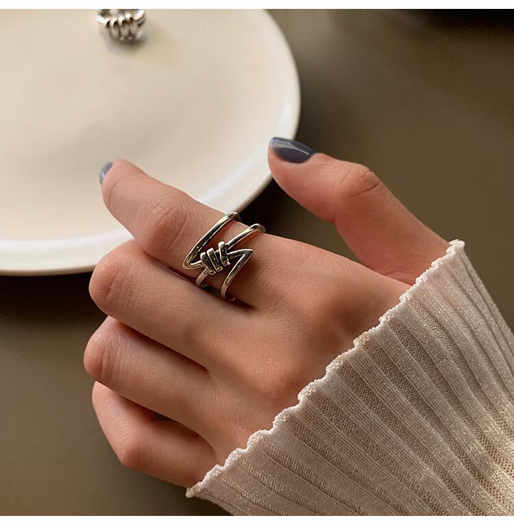 LIVVY シルバーカラー多層クロスノット調節可能な人差し指リングホットジオメトリ波状気質ジュエリーギフト アジャスタブル マルチレイヤー 指輪 銀 Liv21369503121