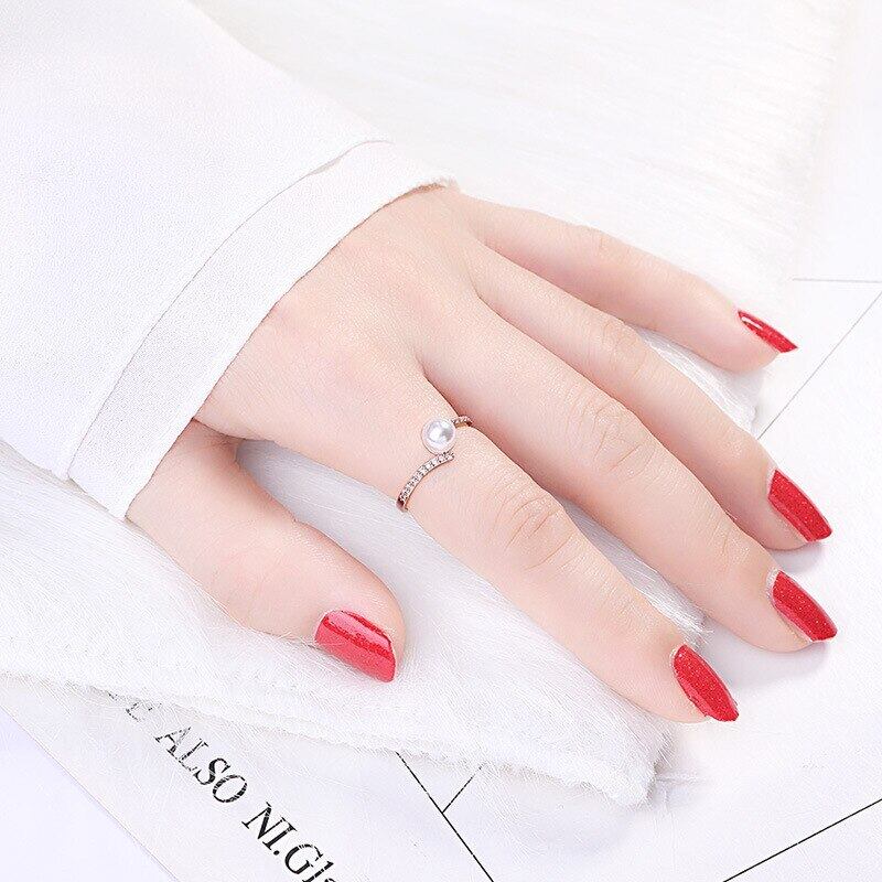 LIVVY 2021 パールジルコンオープニング調節可能なシルバーカラーリング気質シンプルな万能リングジュエリーギフト アジャスタブル 指輪 真珠 銀 Liv29279057790