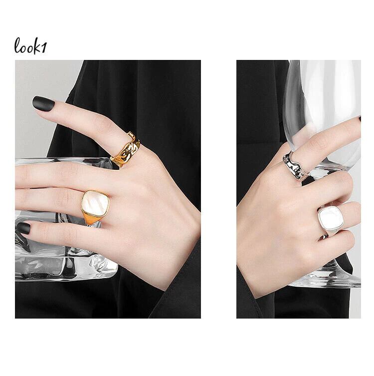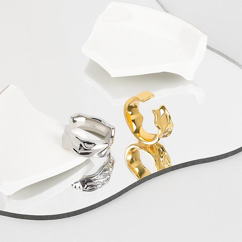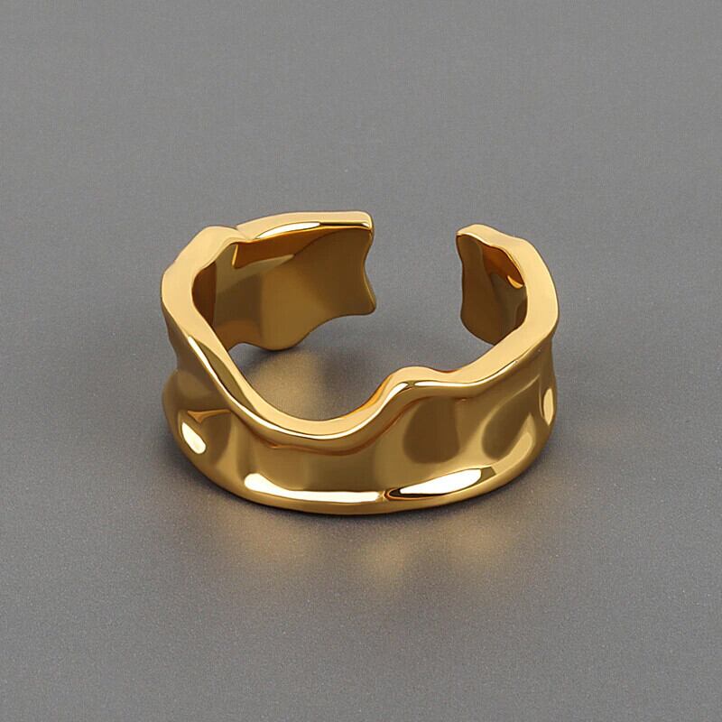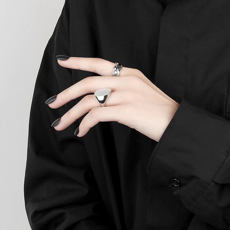 LIVVY シルバーカラーシンプルな不規則な凹凸リング潮流オープンリング女性カップルジュエリーパーティーギフト 指輪 銀 Liv82035770920