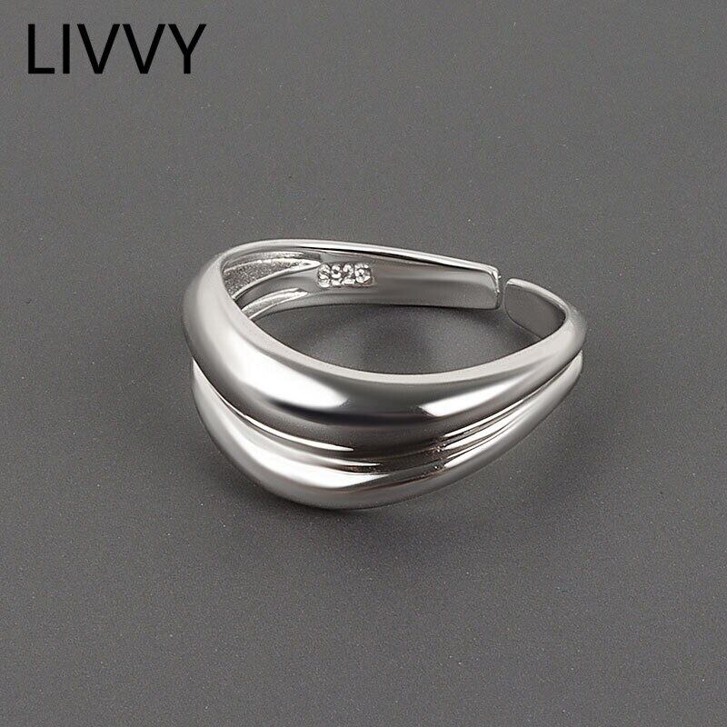 LIVVY シルバーカラー シンプルな光の形のソリッド 2 層リング ジュエリー ニュートラル スタイル オープン リング ギフトに最適 指輪 ソリッドカラー 銀 Liv97974471471