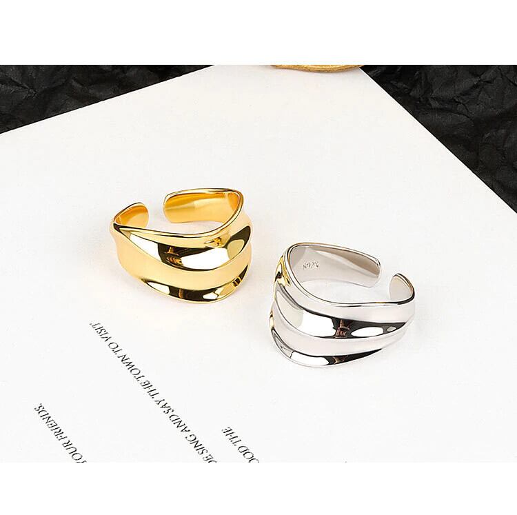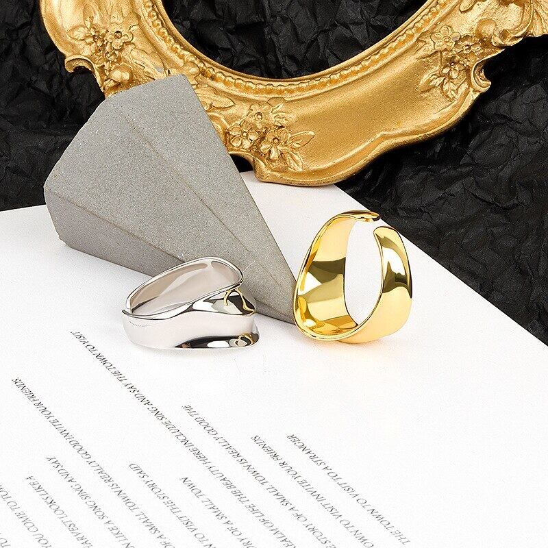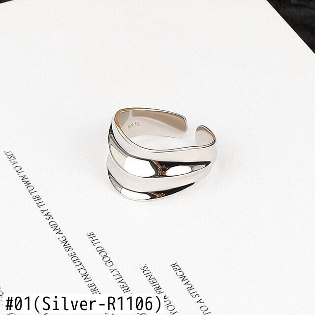 LIVVY シルバーカラー不規則な凹凸ワイド滑らかな表面調節可能なリング女性パーティーファインジュエリー アジャスタブル 指輪 銀 Liv25508019409