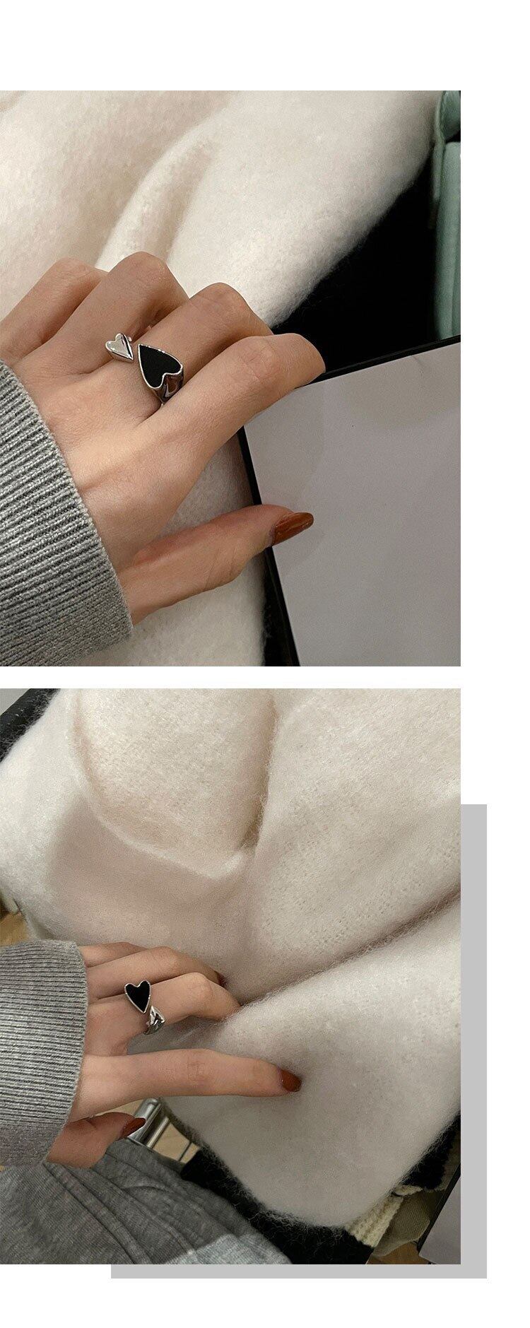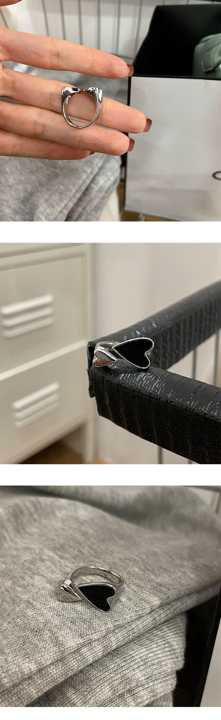 LIVVY ミニマリストのシルバー色の指リング女性クリエイティブダブルブラックラブハートパーティージュエリーギフト 指輪 銀 Liv78825143115