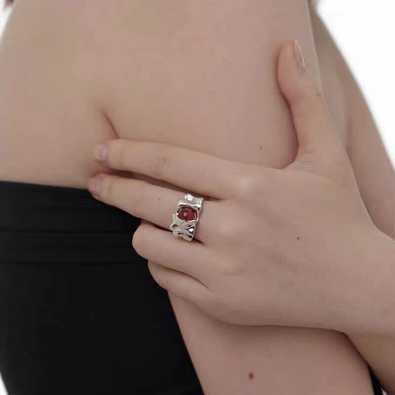 LIVVY レッドジルコン不規則なパターンシルバーカラーリング女性カップルシンプルな結婚記念日ジュエリーギフト 指輪 銀 Liv88769149663