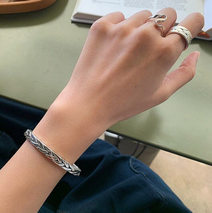 LIVVY シルバーカラー重工業はツイスト織オープンブレスレットレトロコールド風パーティージュエリーギフト 銀 Liv66350508665