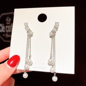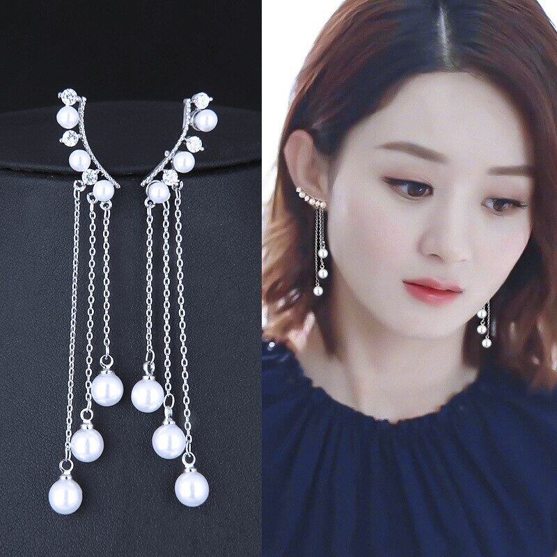 LIVVY シルバーカラー絶妙なパール Tel マルチビーズ耳ラインロングイヤリング女性の結婚式のアクセサリーのギフト 真珠 指輪 銀 Liv16155326981