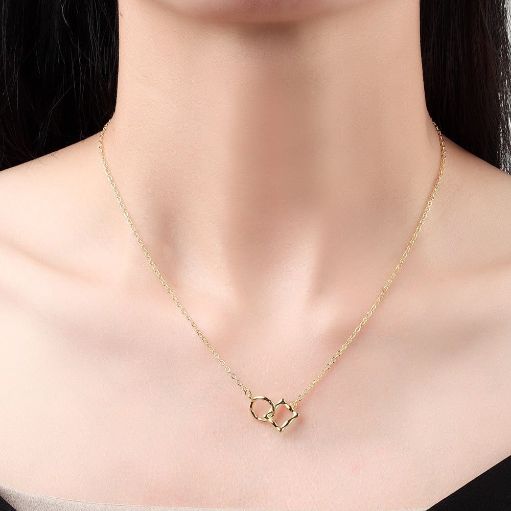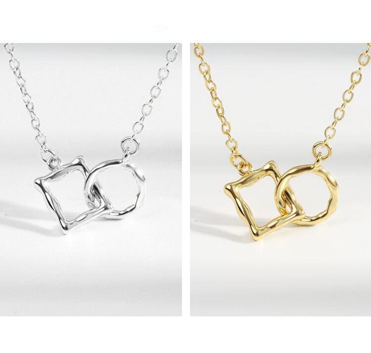 シルバー色不規則な中空幾何学ラウンドスクエアクラスプペンダントネックレス女性トレンド鎖骨チェーンギフトジュエリー レース 銀 スクウェア Liv7299969708