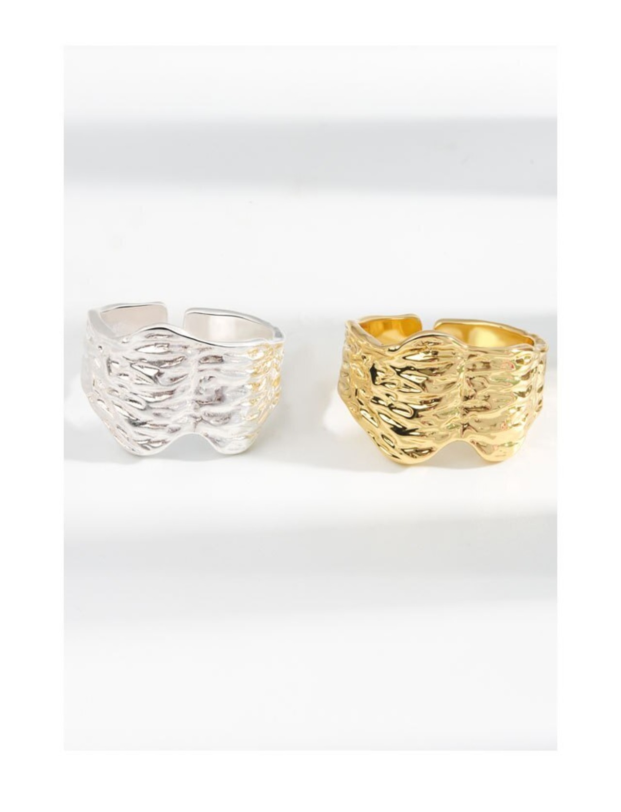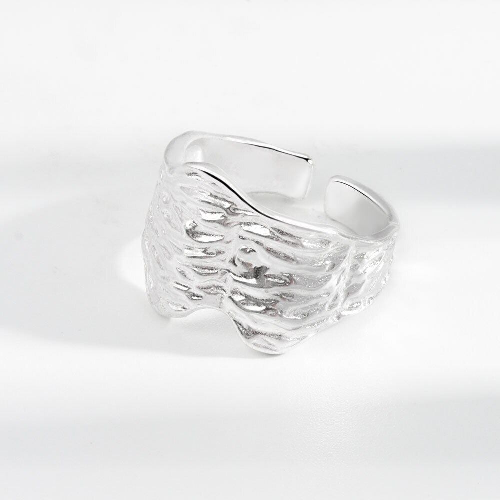 LIVVY シルバー色不規則な凹凸表面テクスチャパターン調節可能なワイドリング女性気質手作りジュエリー アジャスタブル 指輪 銀 Liv35210131546
