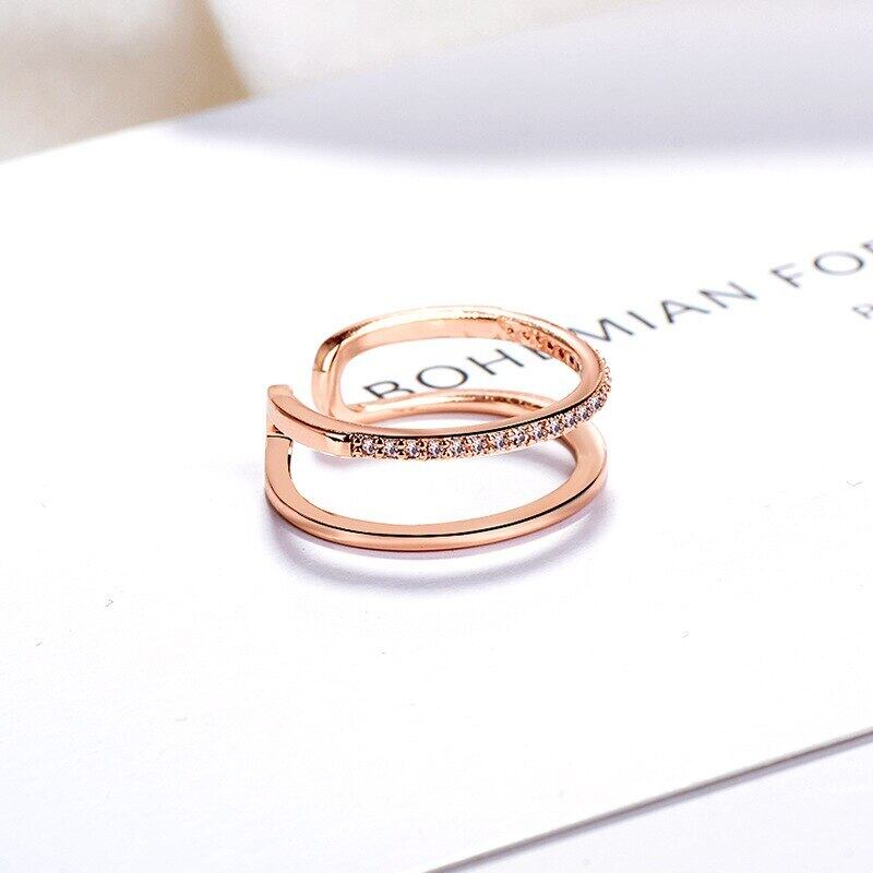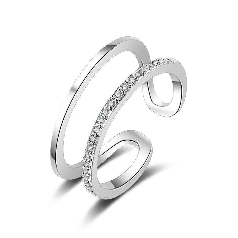 LIVVY シルバーカラーオープニングリングミニマリスト幾何学二重層細線ジルコンパーティージュエリーギフト防止アレルギー 指輪 銀 Liv84231742954