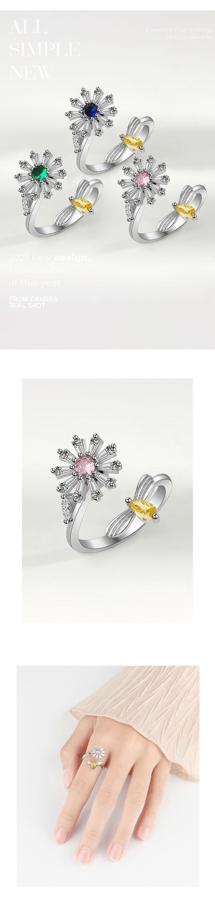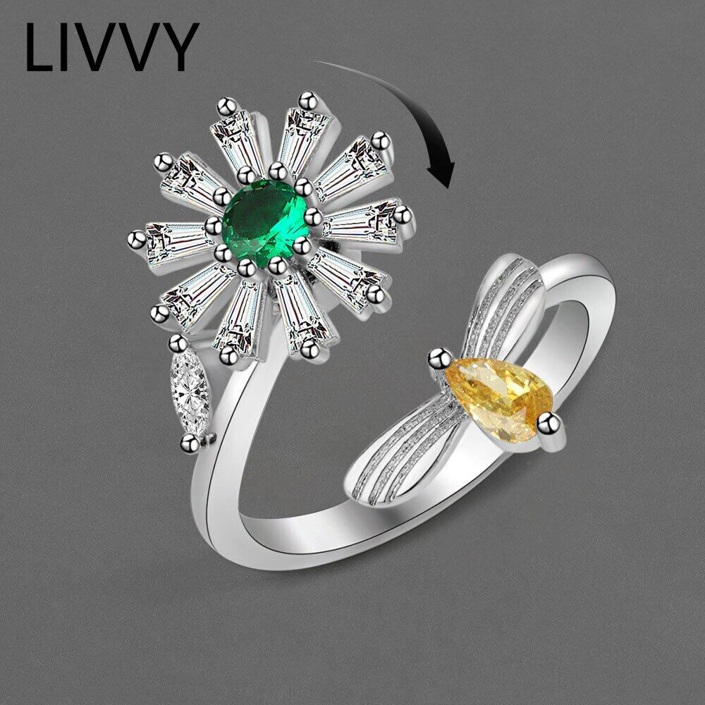 LIVVY シルバーカラー 2022 トレンドクリエイティブマルチカラークリスタルジルコンフラワーリング女性チャームジュエリーパーティーギフト 指輪 フラワーデザイン 銀 Liv60794129438