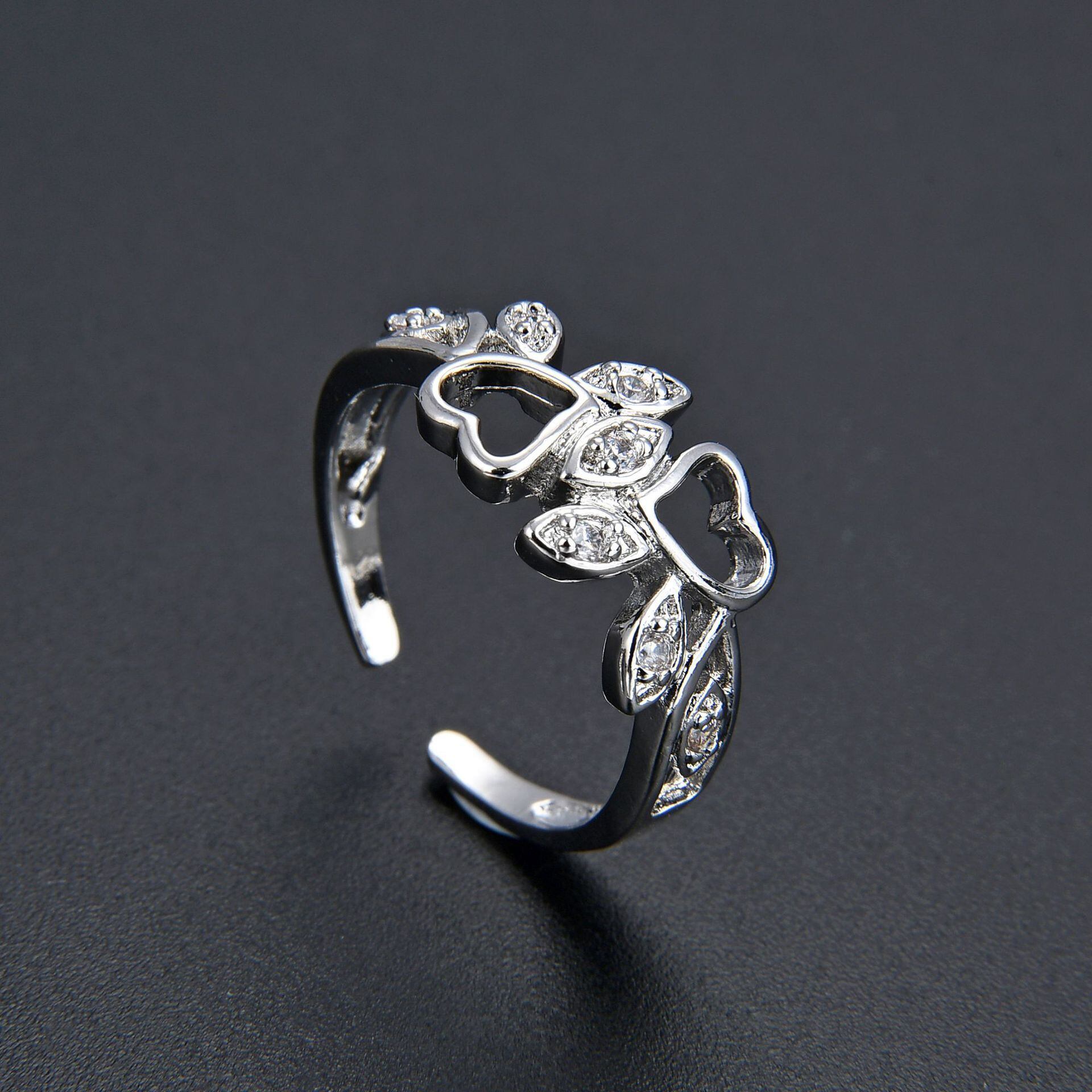 LIVVY シルバーカラー幾何学ジルコン中空ハート調節可能なリング女性チャームジュエリーパーティーギフト アジャスタブル 指輪 銀 Liv2496484705