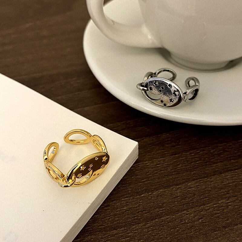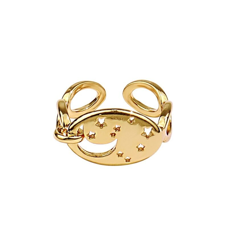 LIVVY クリエイティブオーバルくり抜かれたスタームーン調節可能なリング女性トレンドパーソナリティジュエリーギフト アジャスタブル 指輪 Liv54687950768