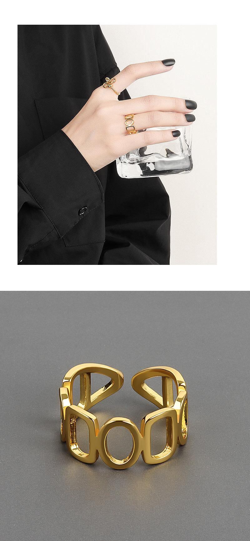 LIVVY シルバーカラー幾何学チェーン中空リングユニークなオープニングシンプルな気質パンクパーティージュエリーギフト 指輪 銀 Liv74596178726