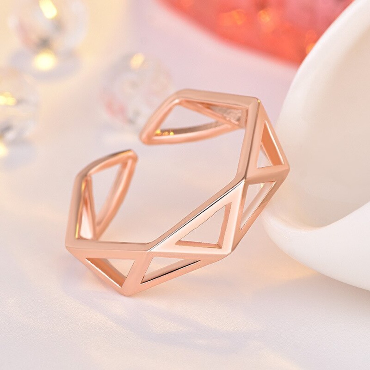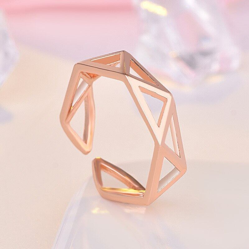 LIVVY シルバーカラーシンプルな幾何学三角形中空開口部調節可能なリング女性の結婚式のパーティーの宝石類のギフト アジャスタブル 指輪 銀 Liv93643270474