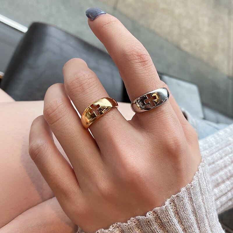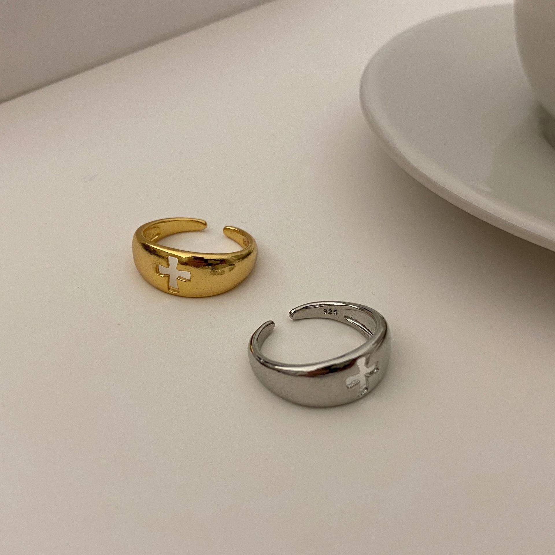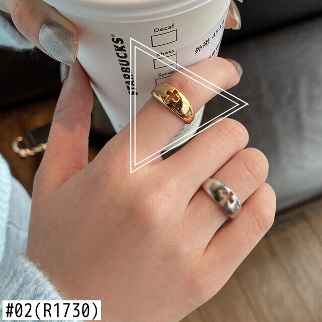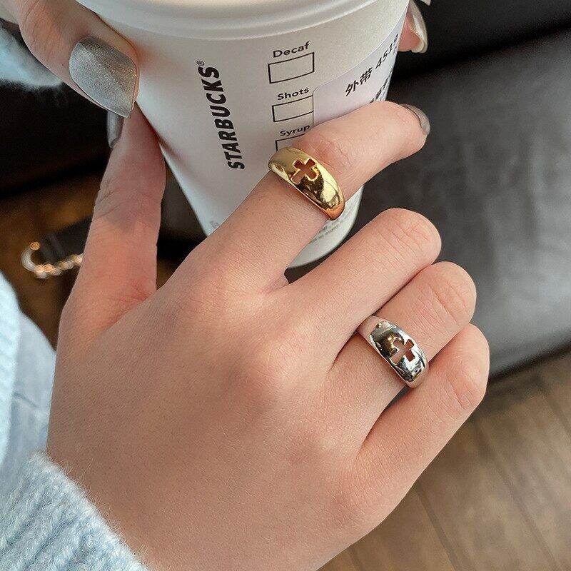 LIVVY シルバーカラーチャーミングスムーズシンプルな幾何リング女性男性中空クロス形状パーティージュエリーギフトアクセサリー 指輪 銀 Liv81368349286