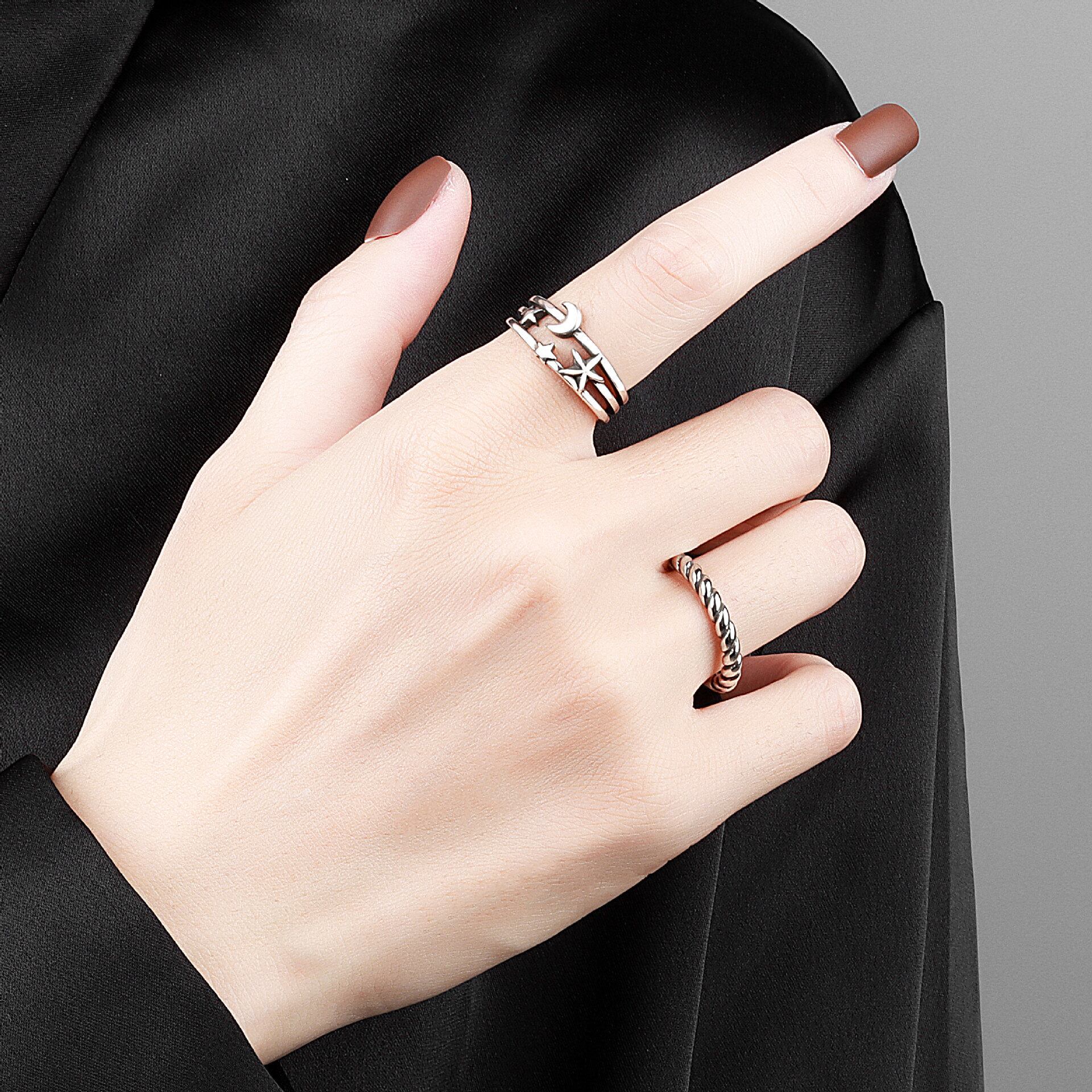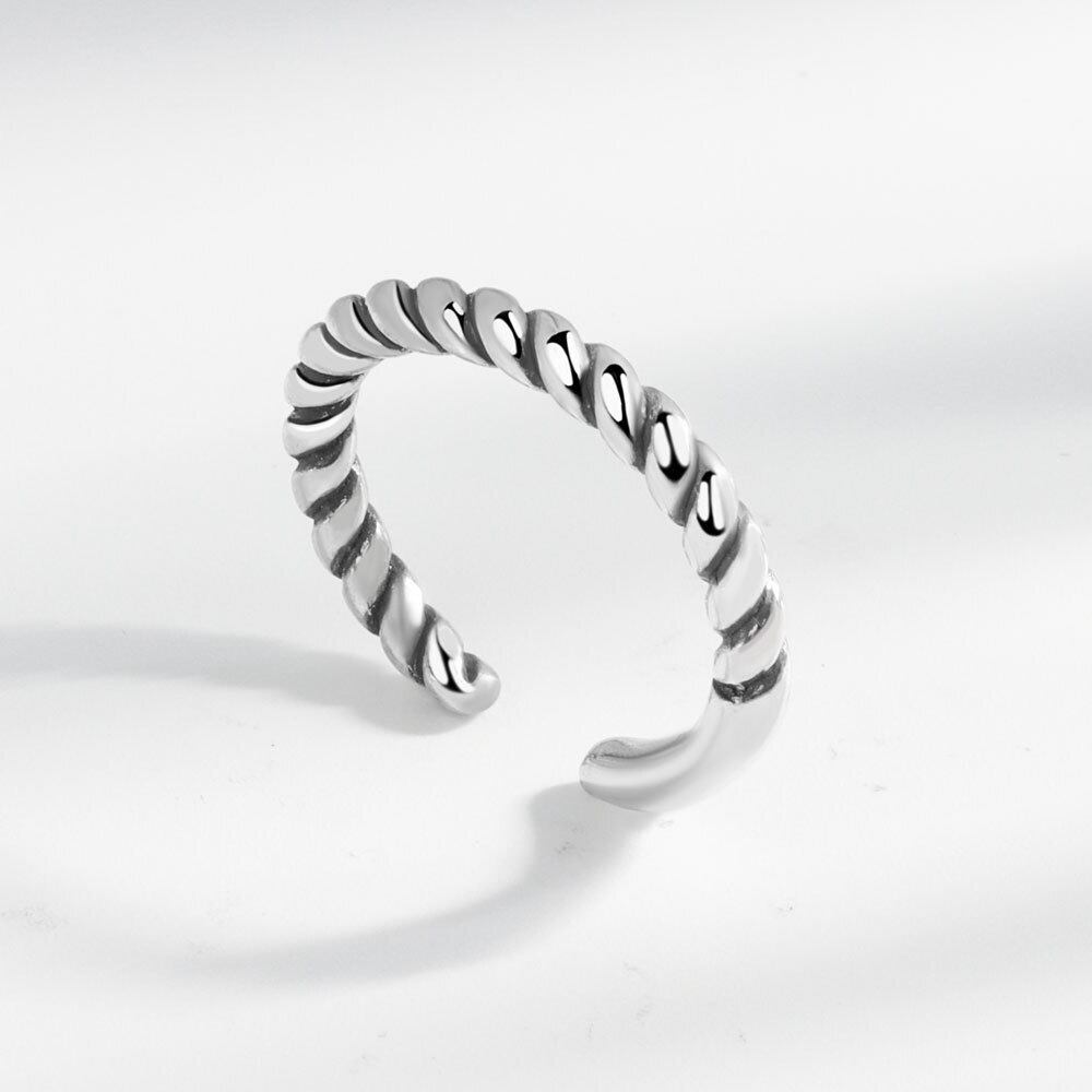 LIVVY タイ シルバーカラー ミニマリスト ツイスト リング レトロ シンプル クリック 手作り ジュエリー アクセサリー ギフト 指輪 銀 Liv2176539250