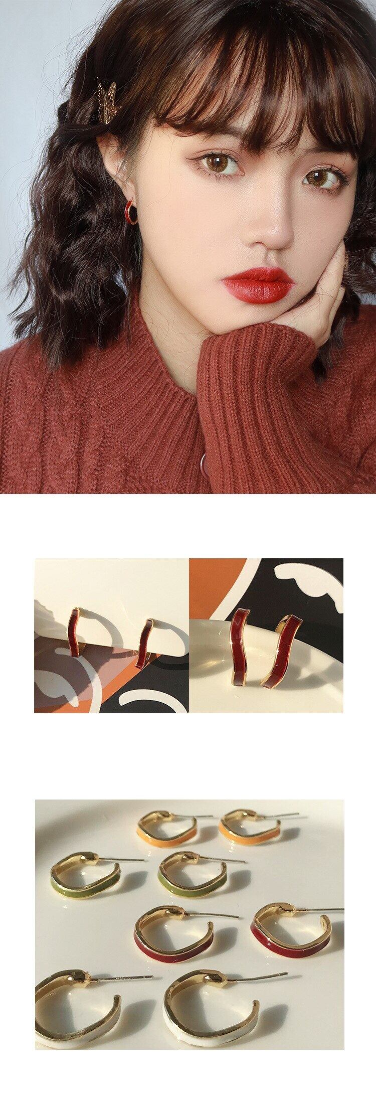 ミニマリストマルチカラー波状パターンイヤリング女性 Clic シンプルなツイストジオメトリ絶妙な手作りギフトジュエリー 指輪 Liv70289228556