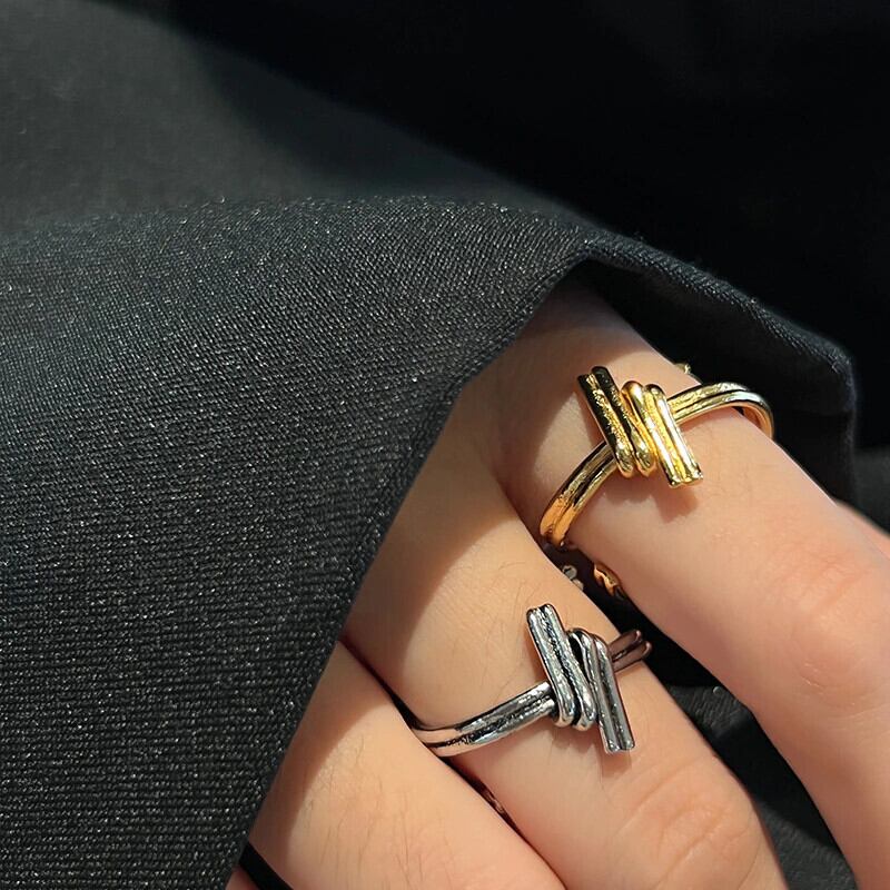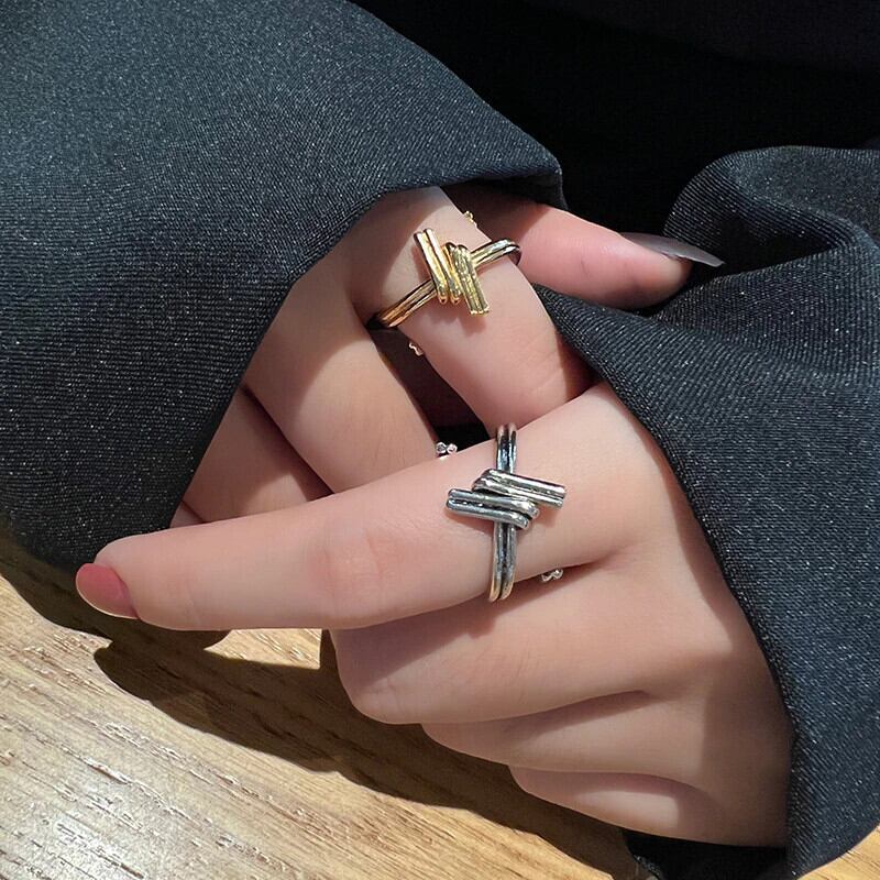 LIVVY シルバーカラークリエイティブクロスノットリング女性ヒップホップシンプルなジュエリーパーティーアクセサリーギフト 指輪 銀 Liv19784210041