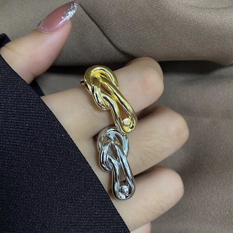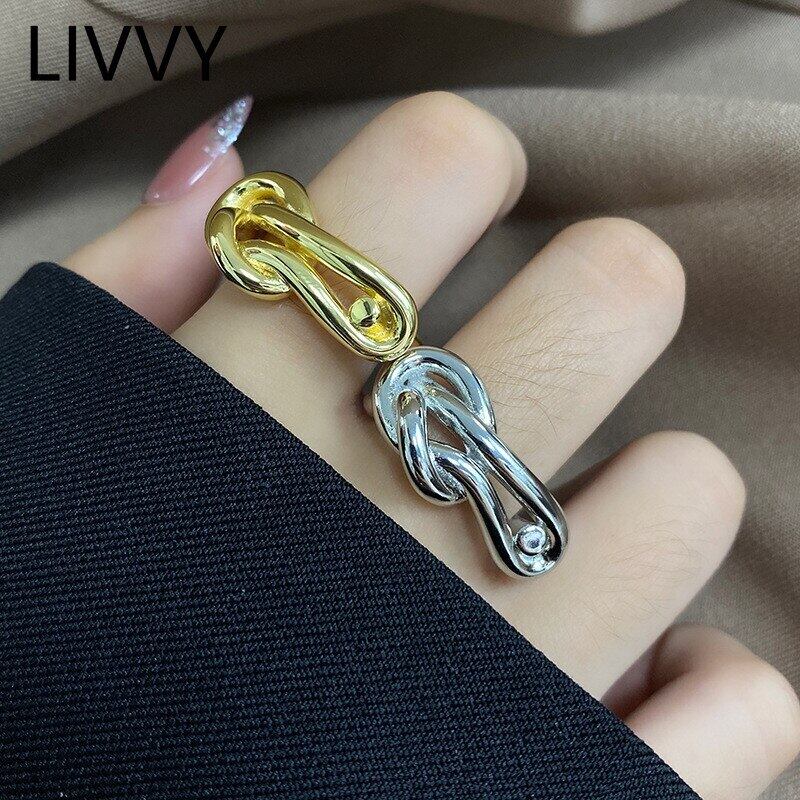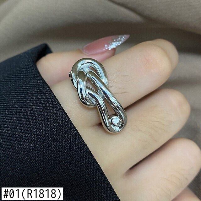 LIVVY シルバーカラーパーソナリティクリエイティブツイストノットリング女性人気のホット洗練された気質ジュエリー 指輪 銀 Liv38973011616